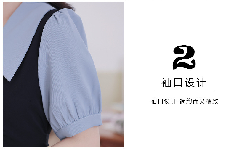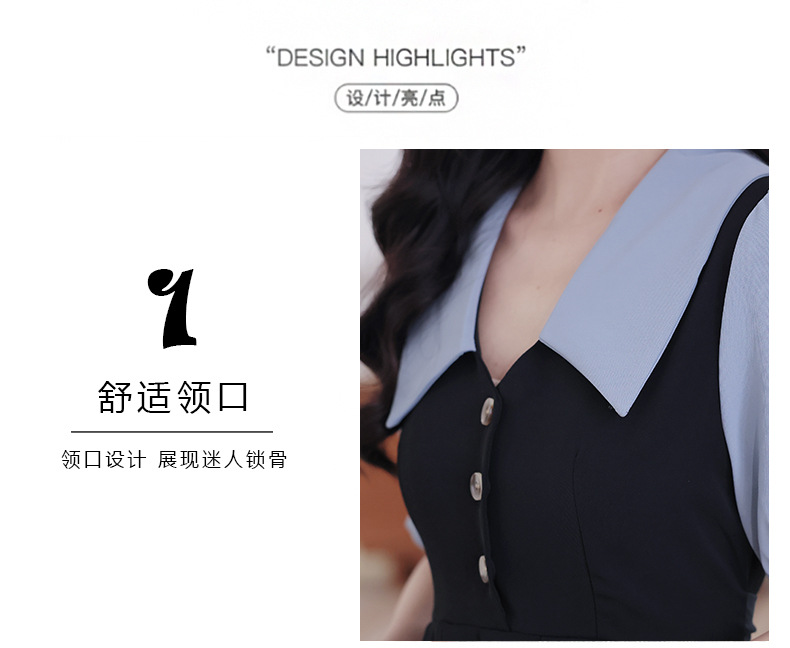 UGC 인터뷰 공식적인 원피스 여자 2025 년 여름 새로운 프랑스 기질 반팔 가짜 투피스 스커트