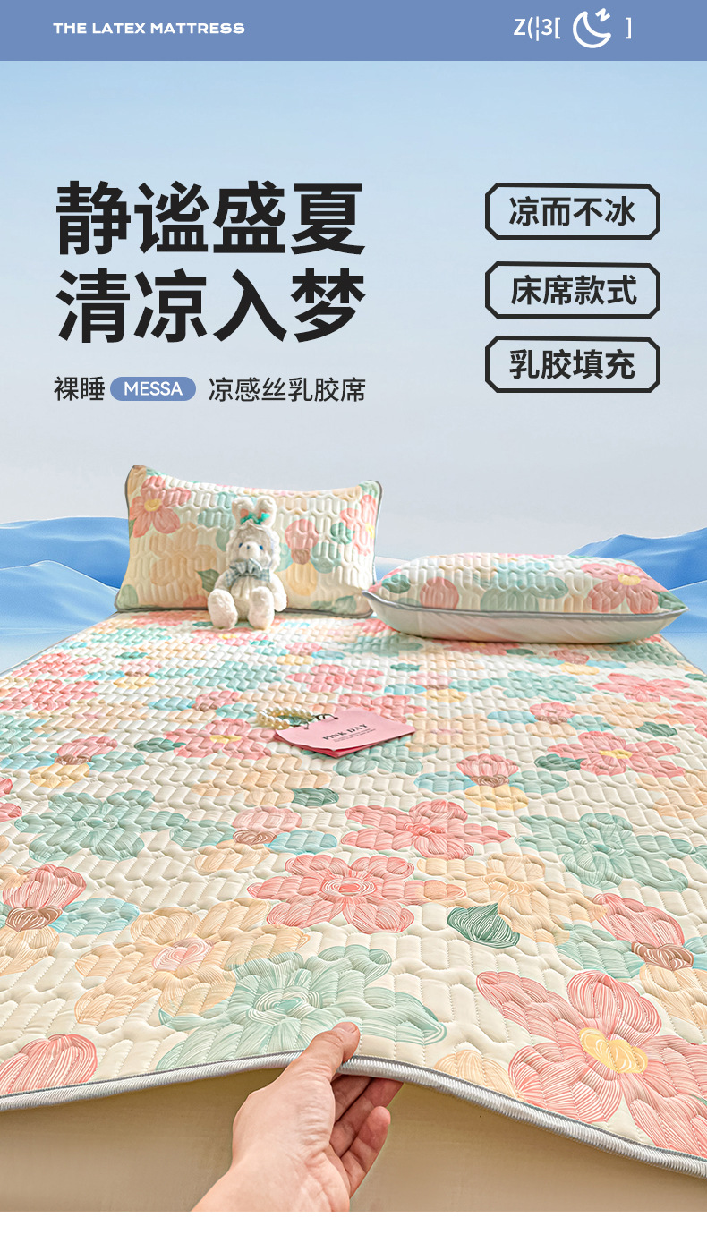 아이스 실크 라텍스 매트 3 조각 여름 어린이 빨 학생 기숙사 단일 기계 빨 수있는 에어컨 부드러운 매트스토어 가기