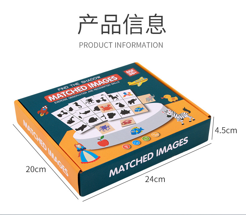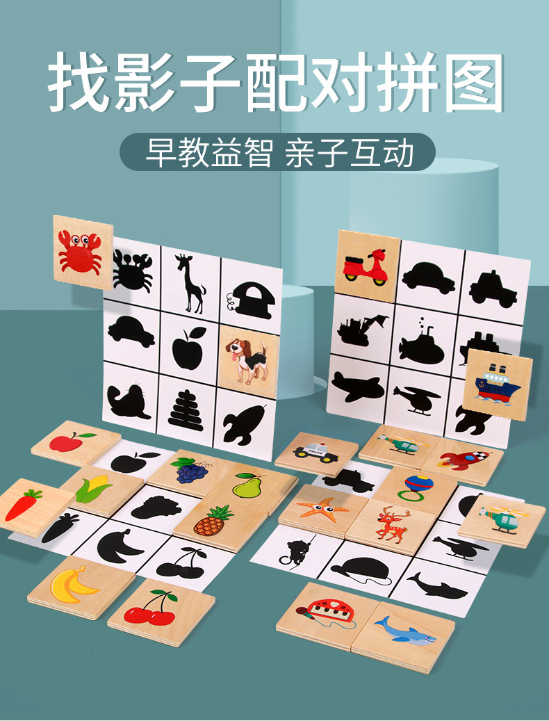 그림자 모양 매칭 퍼즐 3~6세 유치원 중소형 교실 교육 영역 장난감 재료 몬테소리 조기 교육 교육 보조 장치