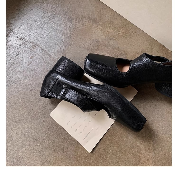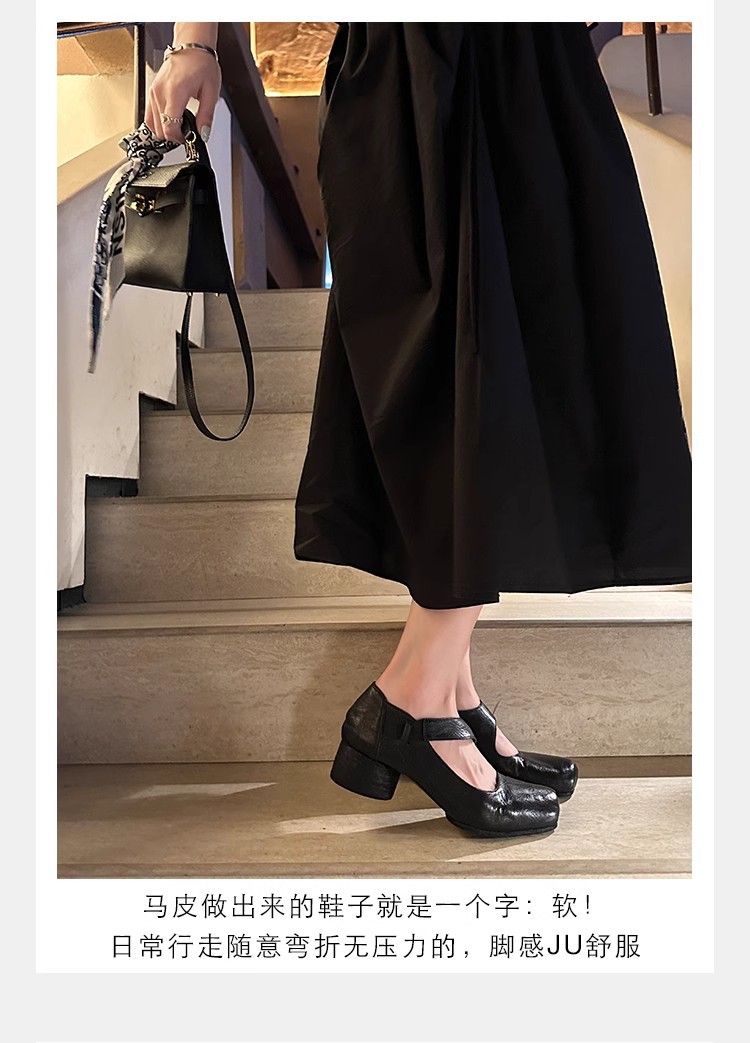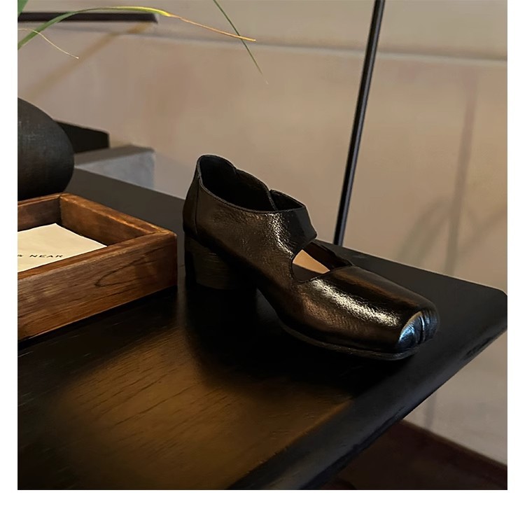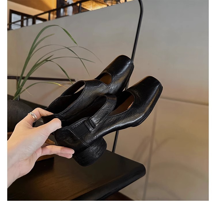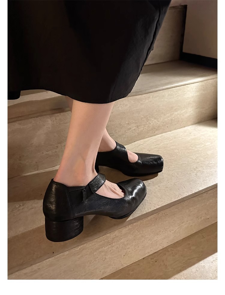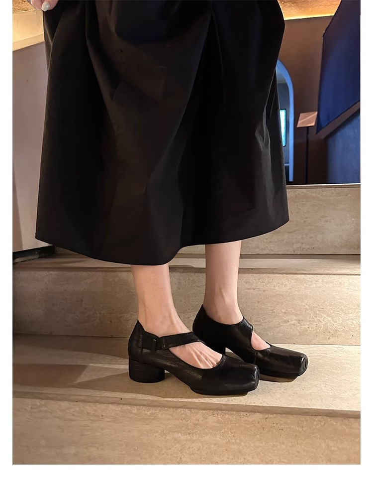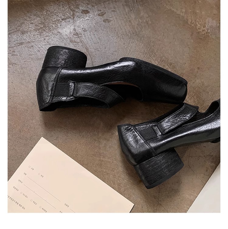 포도 엄마 같은 신발 하이 엔드 텍스처 말 가죽 스퀘어 두꺼운 힐 소프트 하이힐 발레 슈즈