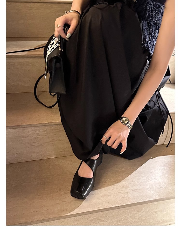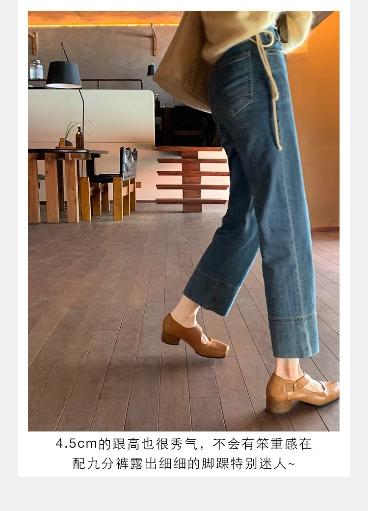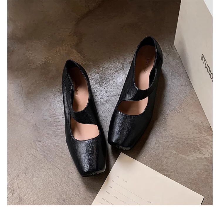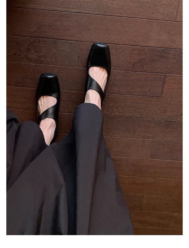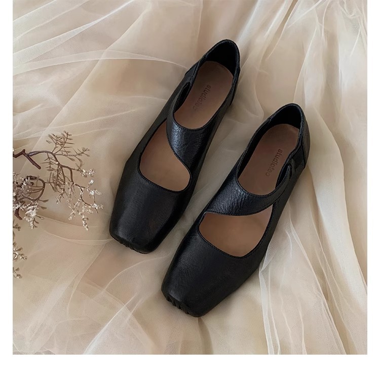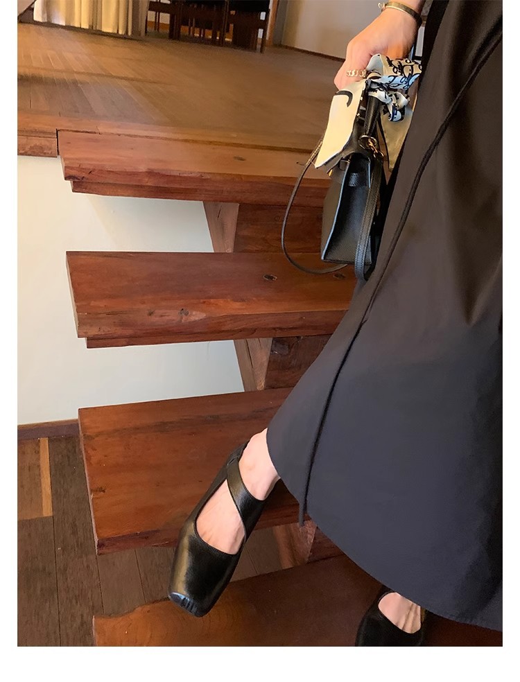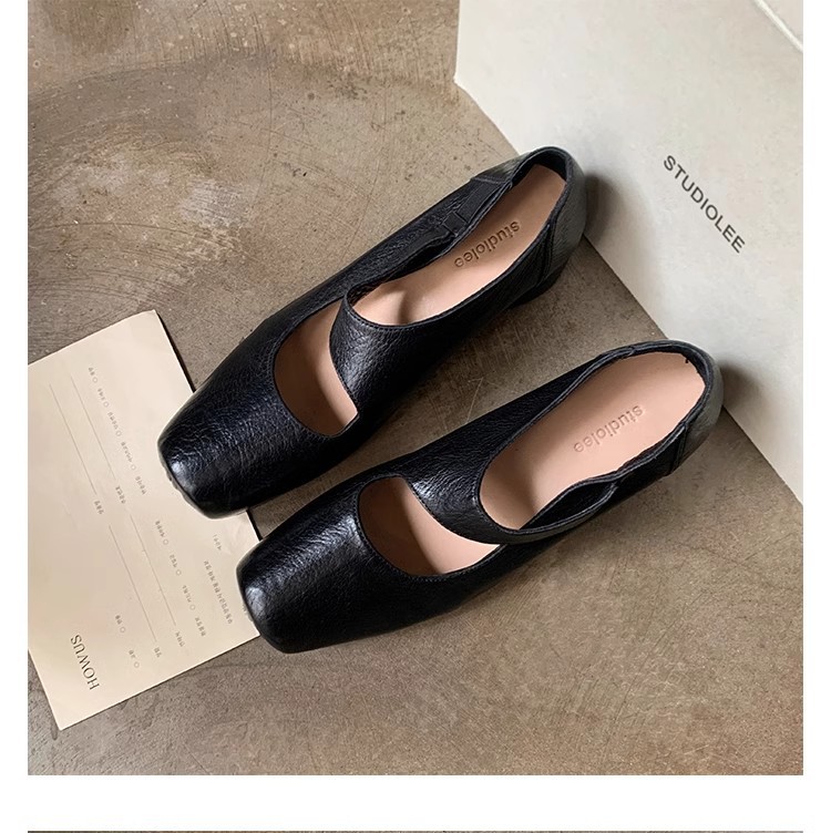 포도 엄마 같은 신발 하이 엔드 텍스처 말 가죽 스퀘어 두꺼운 힐 소프트 하이힐 발레 슈즈