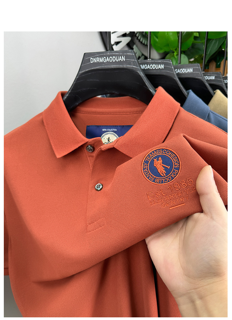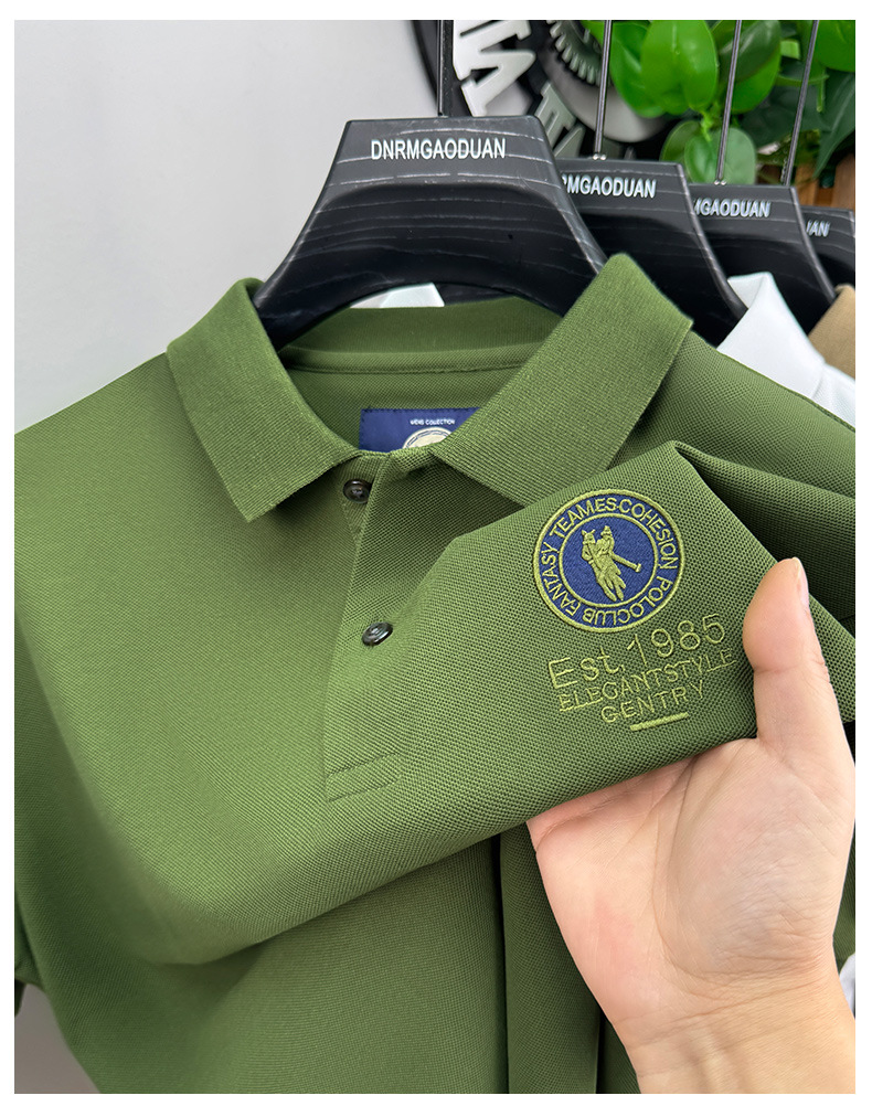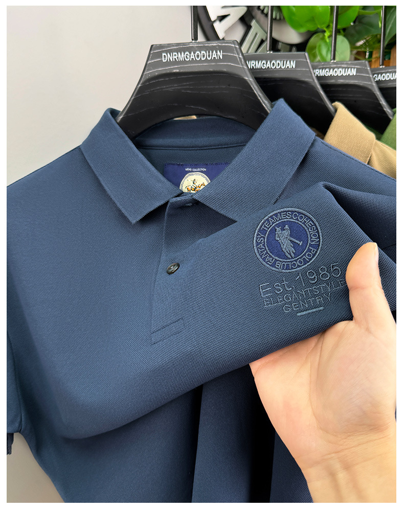 남자 2025 새로운 자수 옷깃 폴로 셔츠 반팔 티셔츠 면 통기성 비즈니스 캐주얼 트렌디 남성복스토어 가기