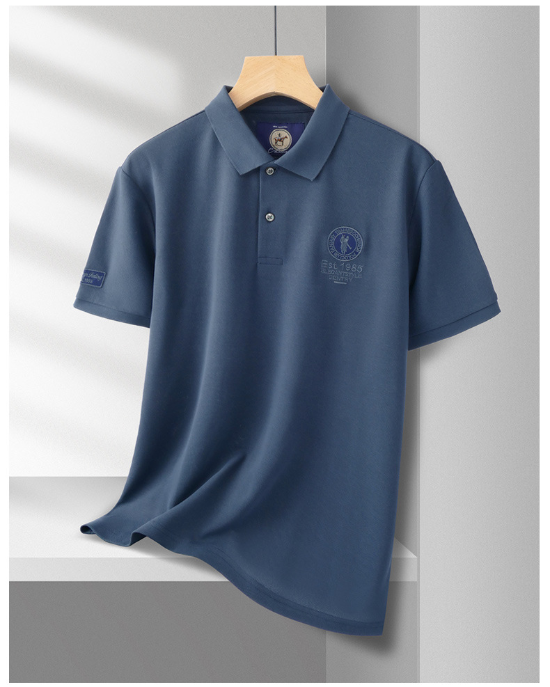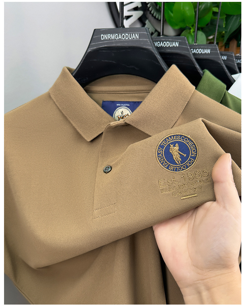 남자 2025 새로운 자수 옷깃 폴로 셔츠 반팔 티셔츠 면 통기성 비즈니스 캐주얼 트렌디 남성복