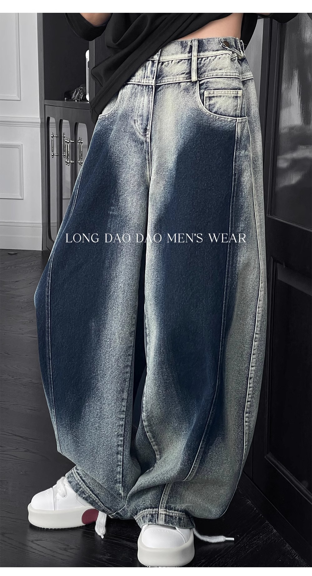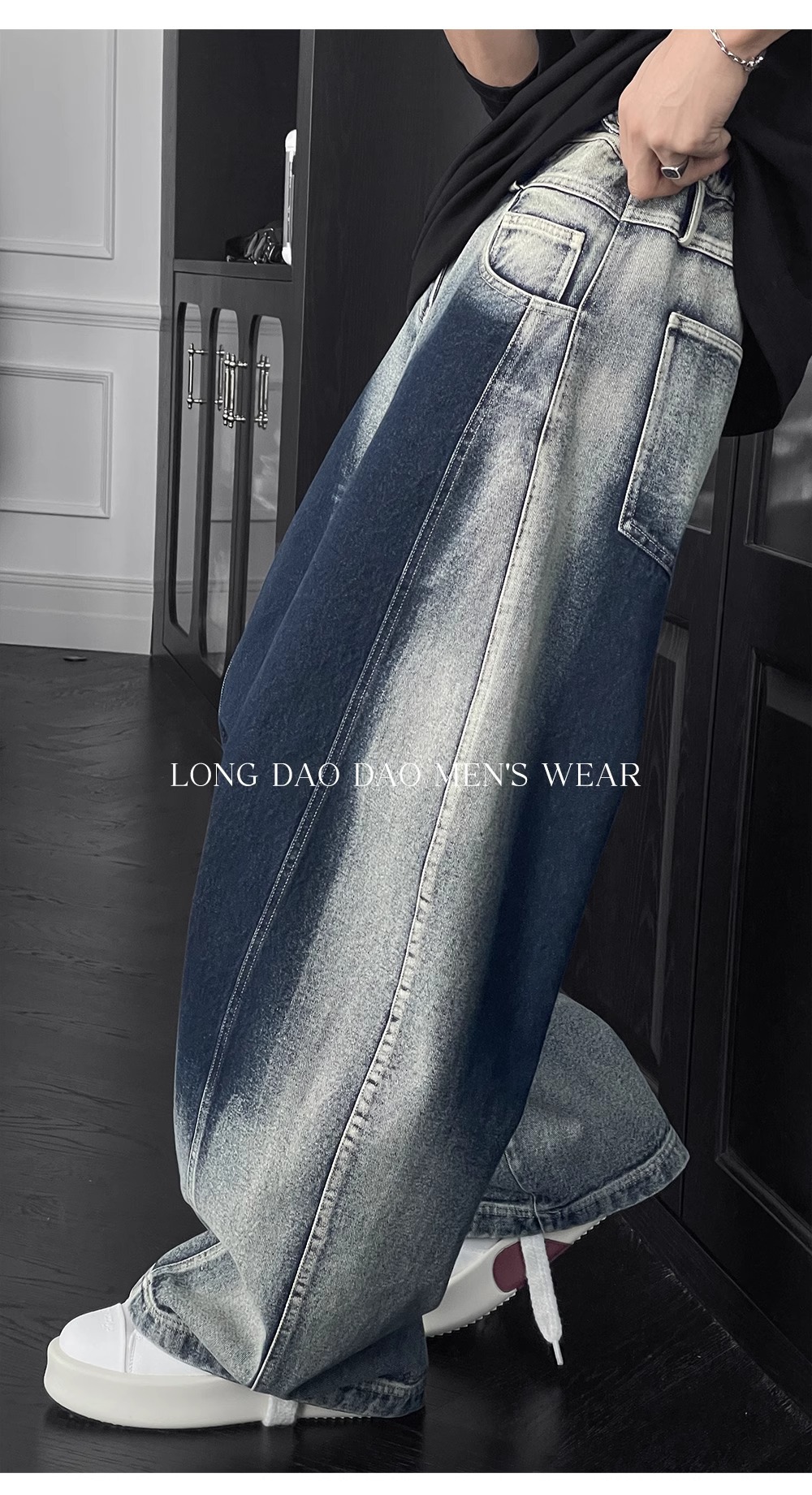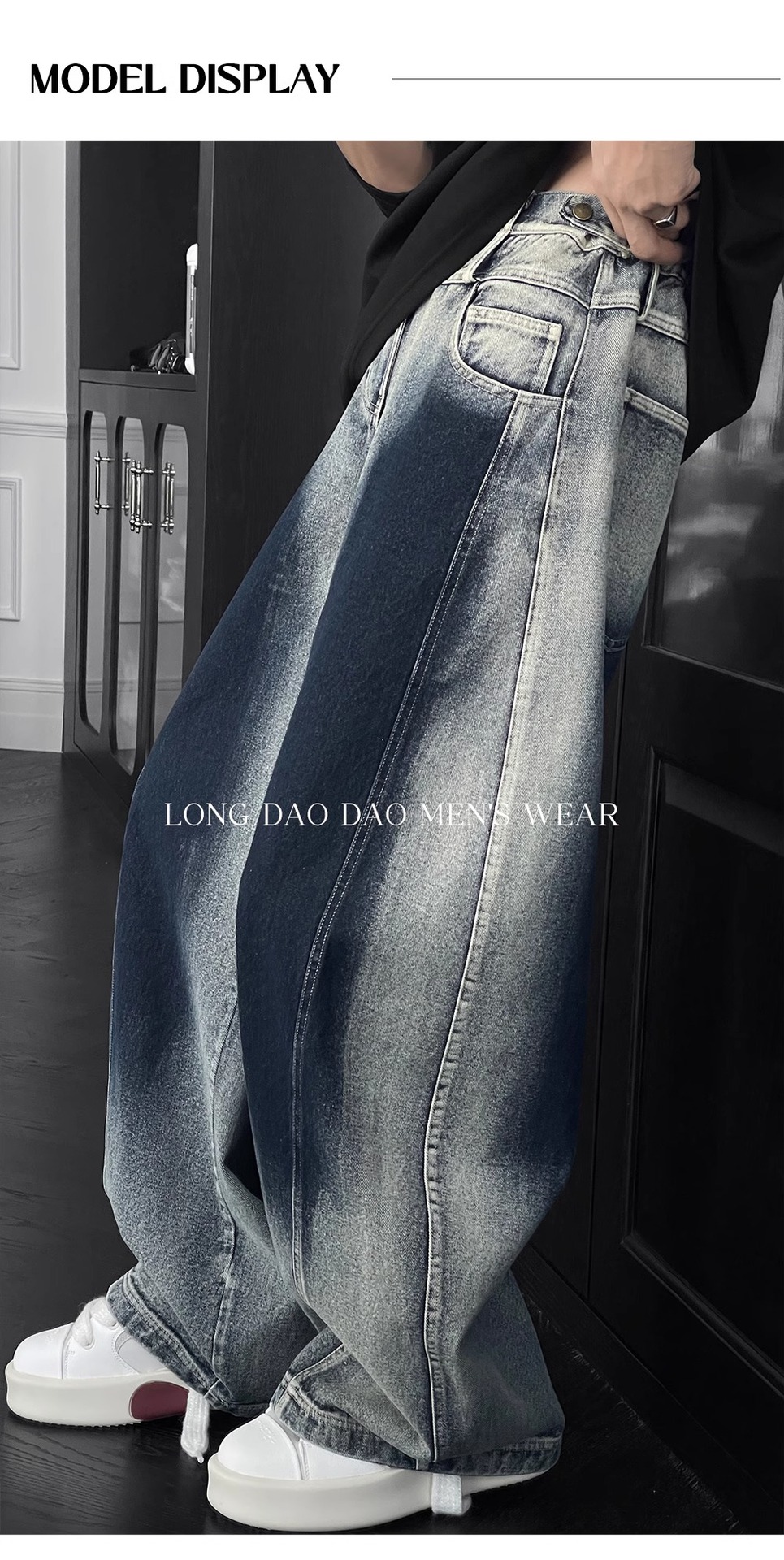 2025 봄 뉴 청바지 남자 트렌디 레트로 아메리칸 스타일 올 매치 루즈 시미 터 캐주얼 스트레이트 롱 팬츠