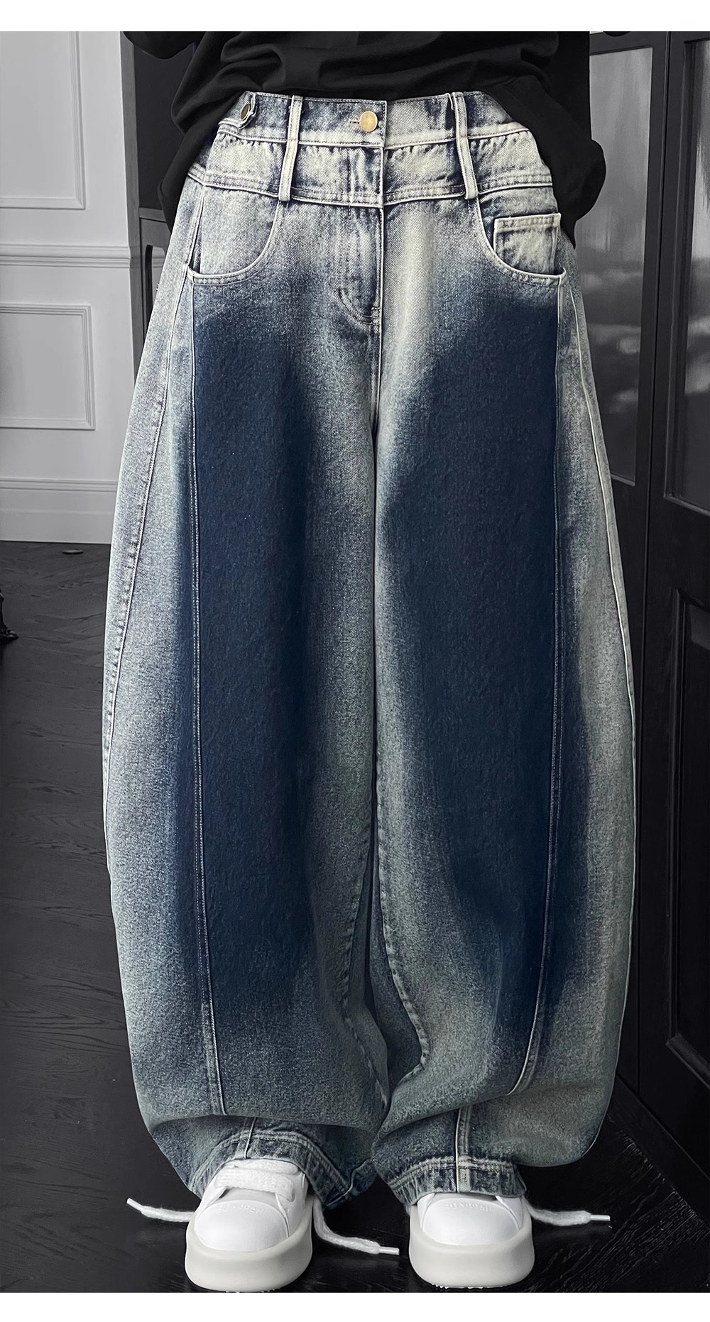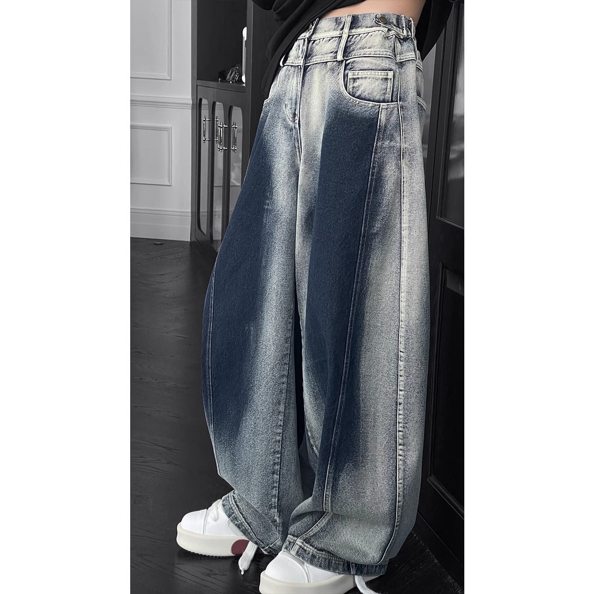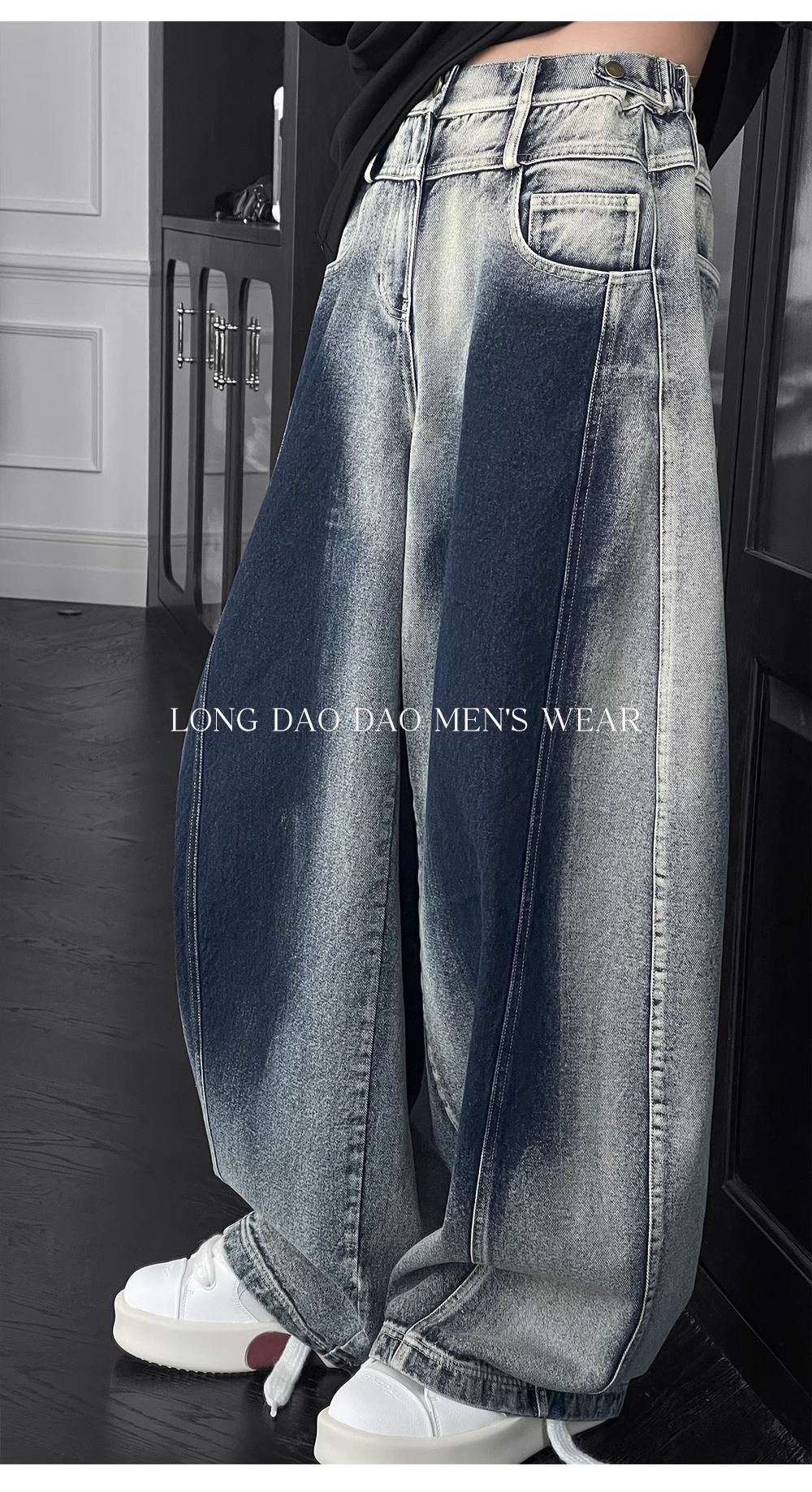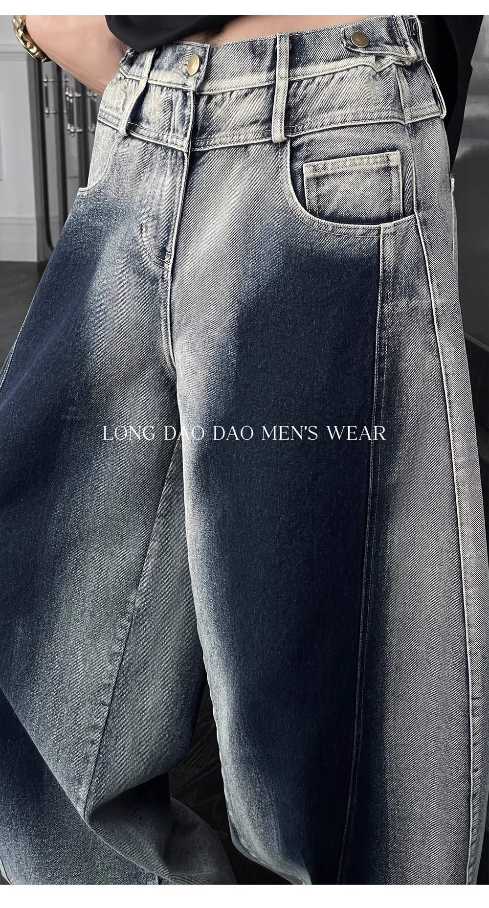 2025 봄 뉴 청바지 남자 트렌디 레트로 아메리칸 스타일 올 매치 루즈 시미 터 캐주얼 스트레이트 롱 팬츠