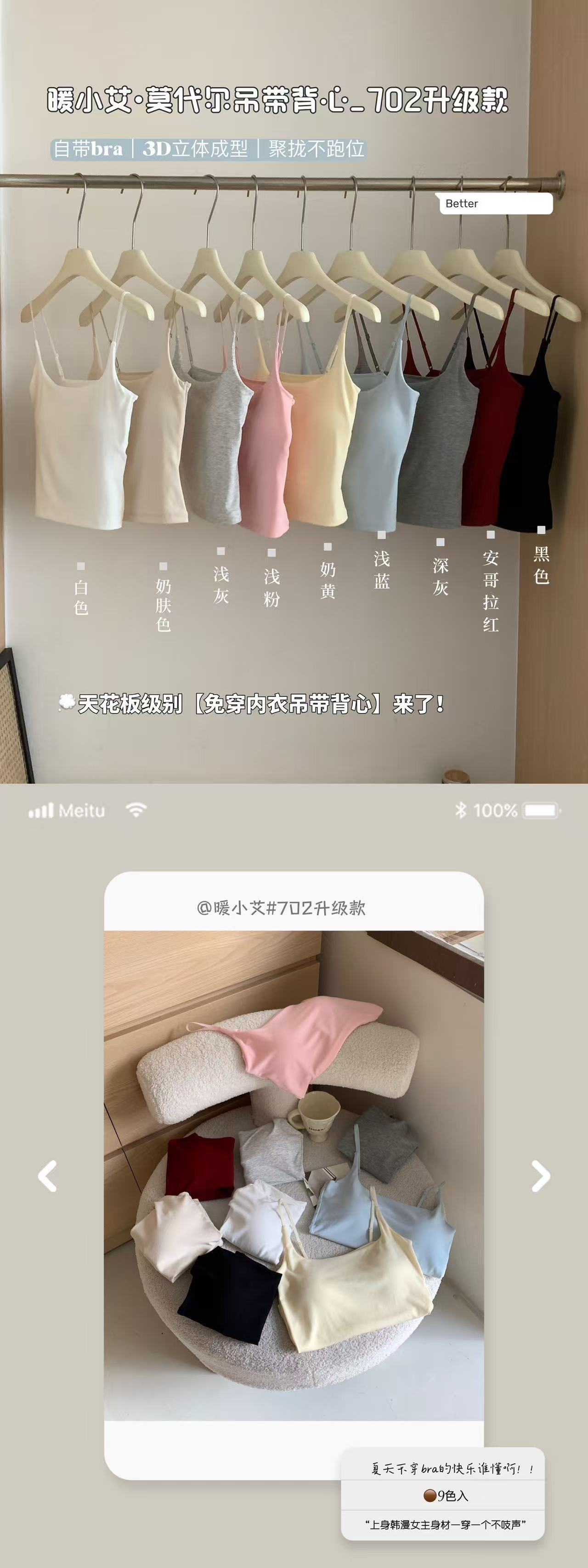 Nuanniao Ai 702 조끼 업그레이드 버전 조끼 서스펜더 여성 모달 탑 올인원 컵 유방 패드 튜브 탑 조끼스토어 가기