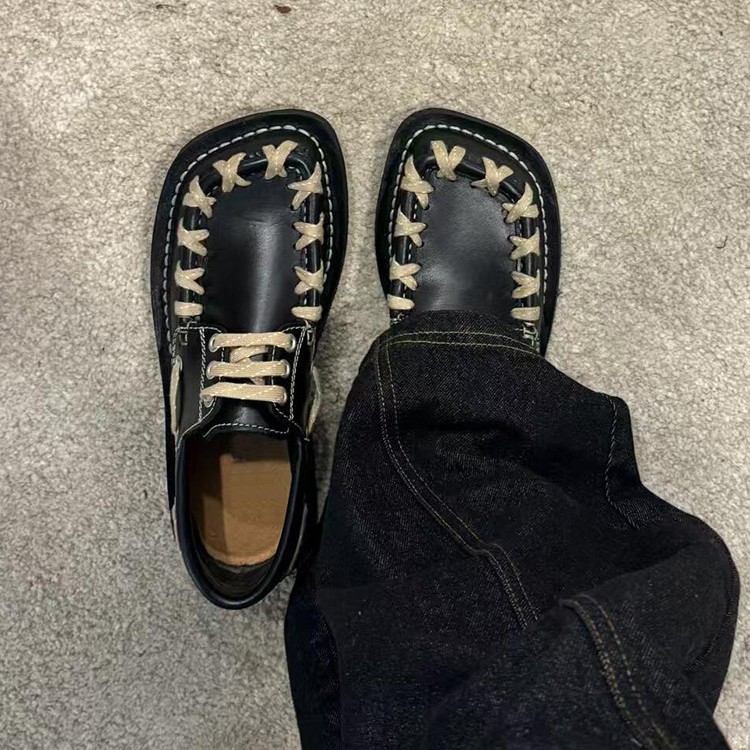 재고 ~ 파리 레트로 플랫 슈즈 스퀘어 발가락 로퍼 여성 신발 2025 새로운 영국 스타일 가죽 신발스토어 가기