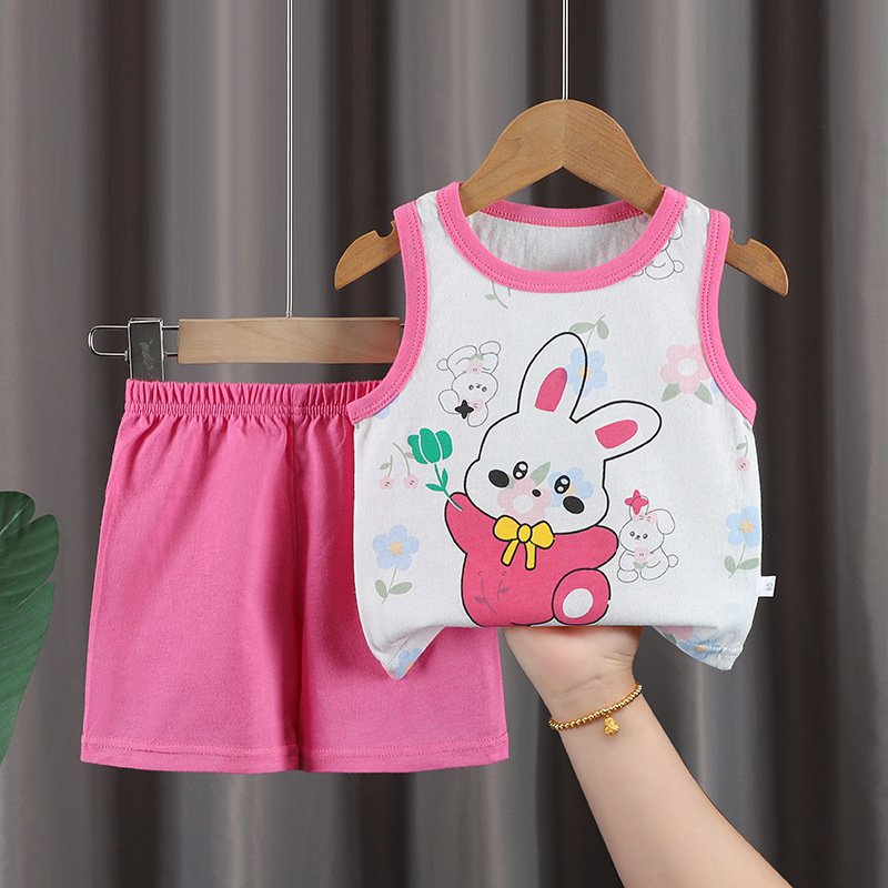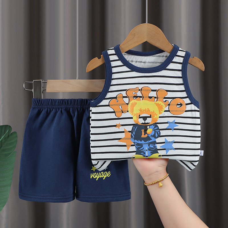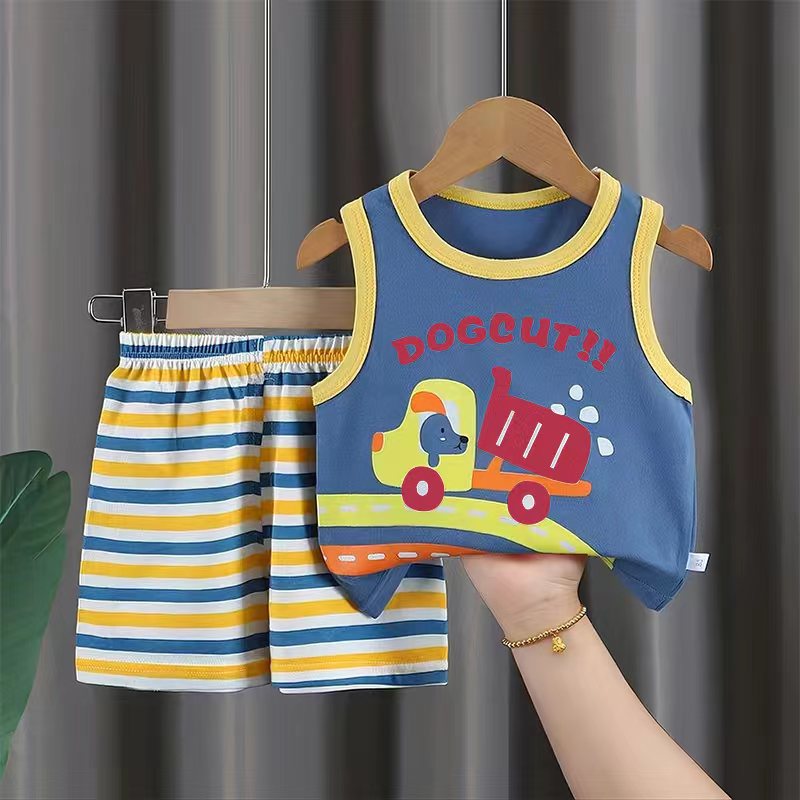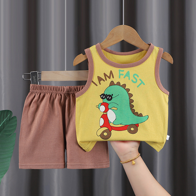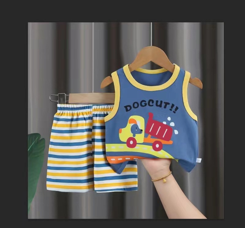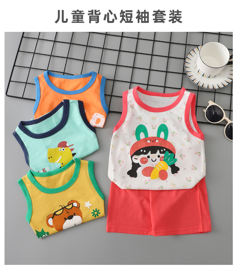 어린이 조끼 세트 여름 면 민소매 소년 반바지 옷 새 여름 소녀 투피스 아동복스토어 가기