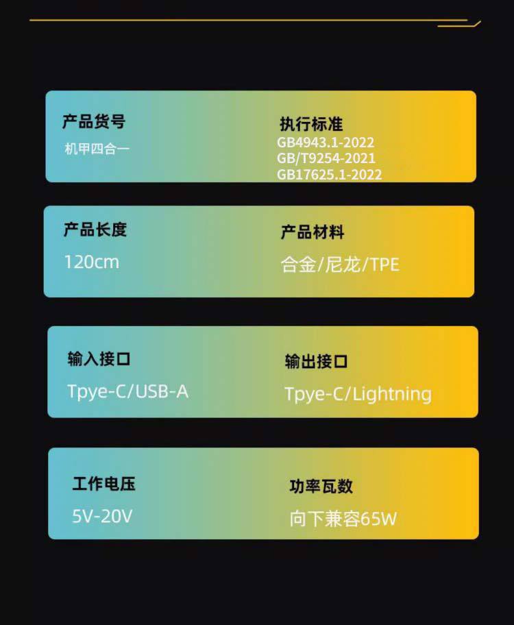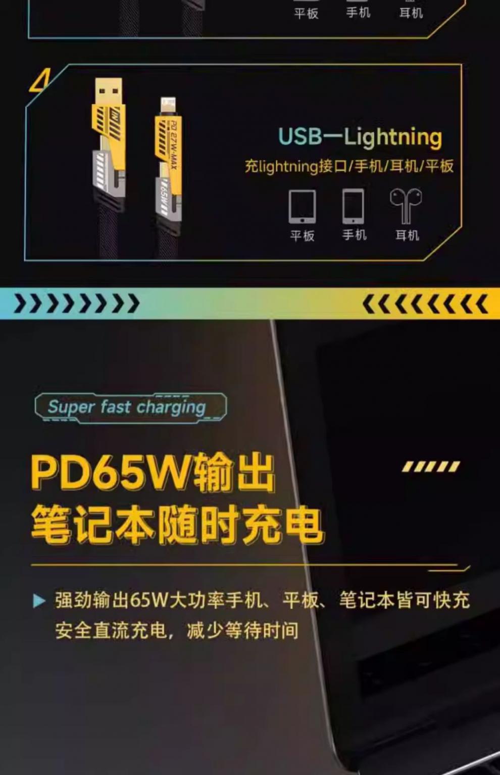 PD65W 메카 4-in-1 데이터 케이블 Typec에 적합한 2-in-2 편조 케이블은 15 Android Dropshipping을 지원합니다.스토어 가기