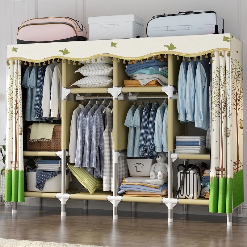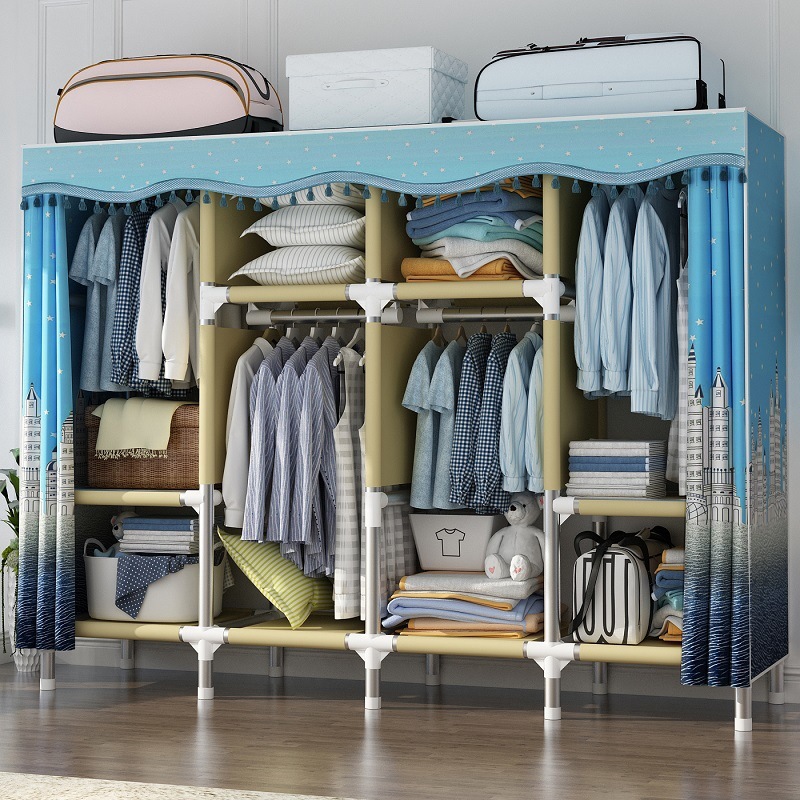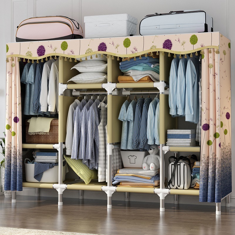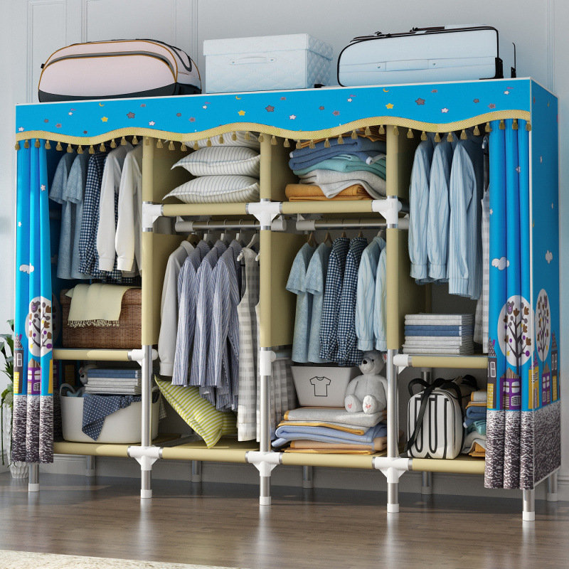 간단한 천 옷장 가정용 침실 천 옷장 강철 파이프 굵게 강화 옷장 보관 선반 올스틸 렌탈 하우스스토어 가기