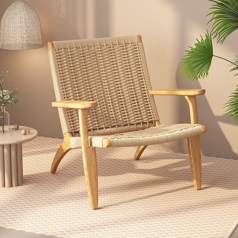 북유럽 솔리드 우드 싱글 소파 의자 안장 등나무 의자 발코니 레저 대마 로프 팔걸이 등받이 게으른 의자 야외