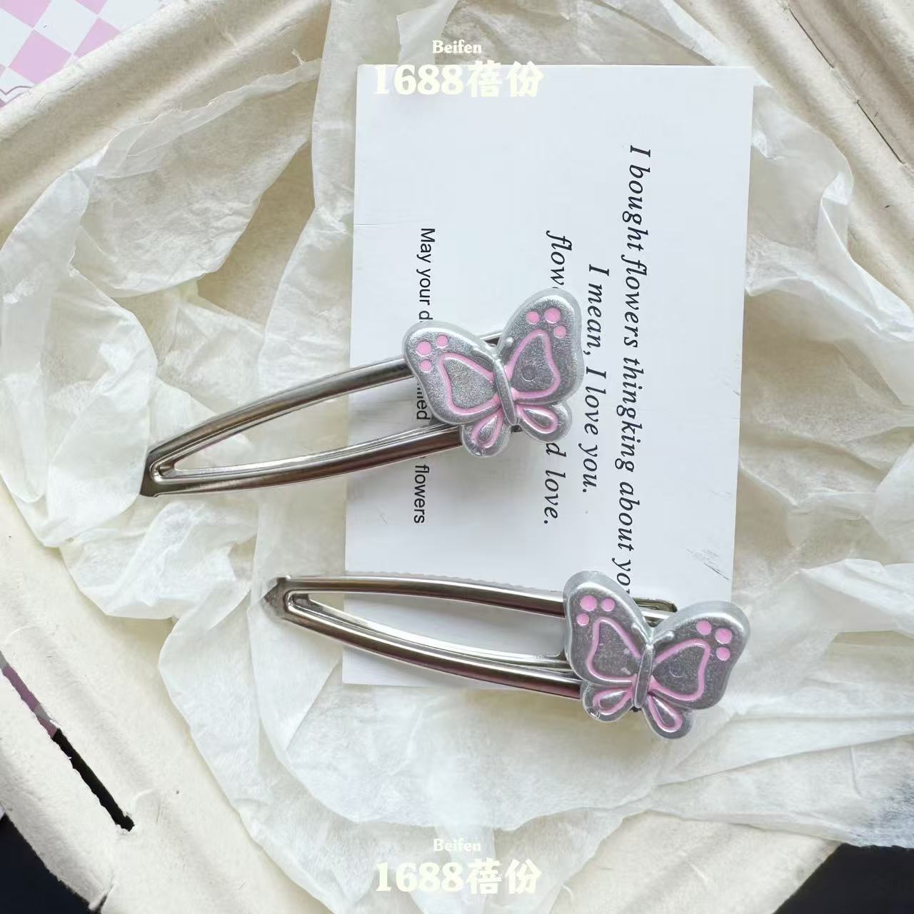 새 실버 그린 나비 덕빌 클립 헤어 클립 달콤한 소녀 하트 뱅 사이드 클립 올 매치 학생 헤어핀 헤어