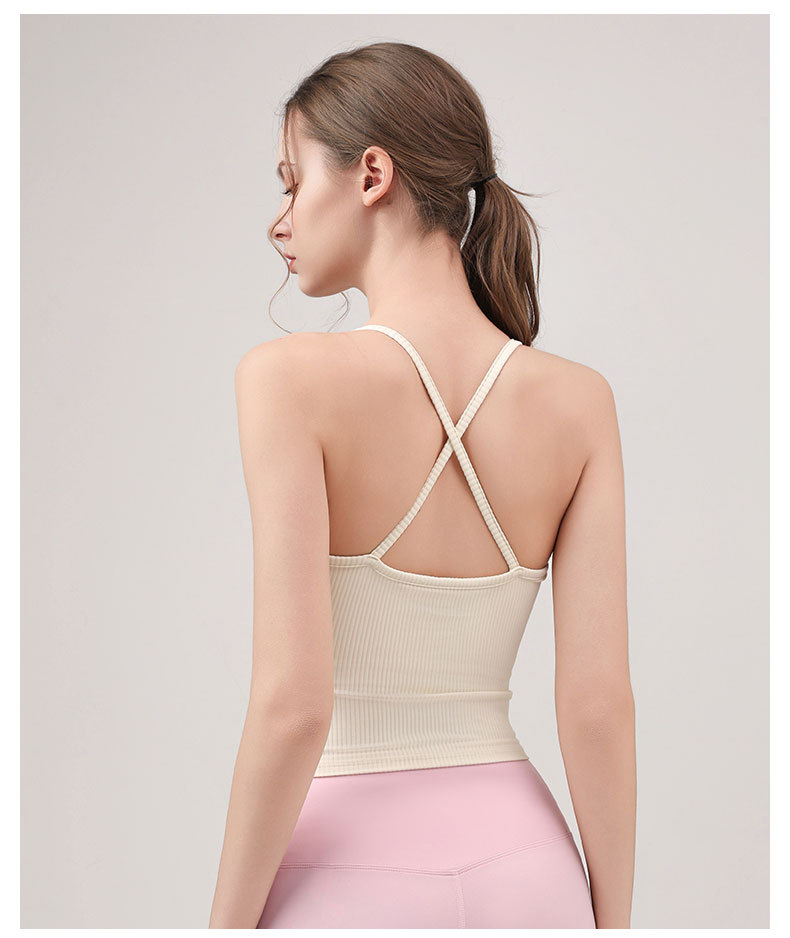 요가복 고정 컵 크로스 스포츠 조끼 여성 슬리밍 요가 피트니스 편안한 스파게티 스트랩 겉옷 스포츠 속옷스토어 가기