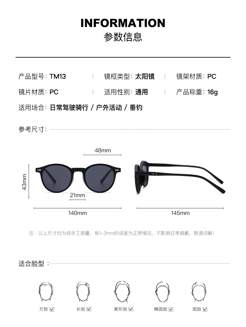한국판 초경량 선글라스 라운드 프레임 안티 자외선 편광 선글라스 TR90 새로운 보스턴 프레임 평면 안경