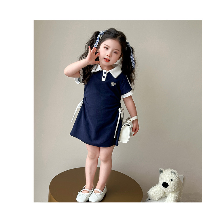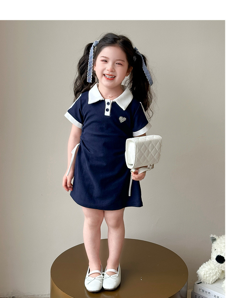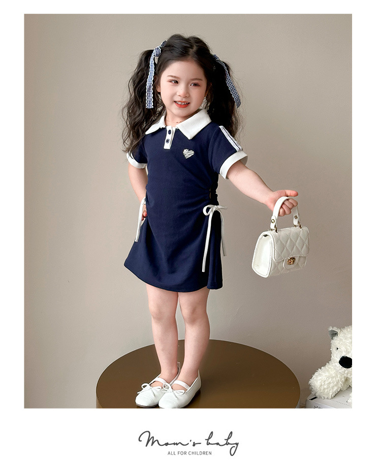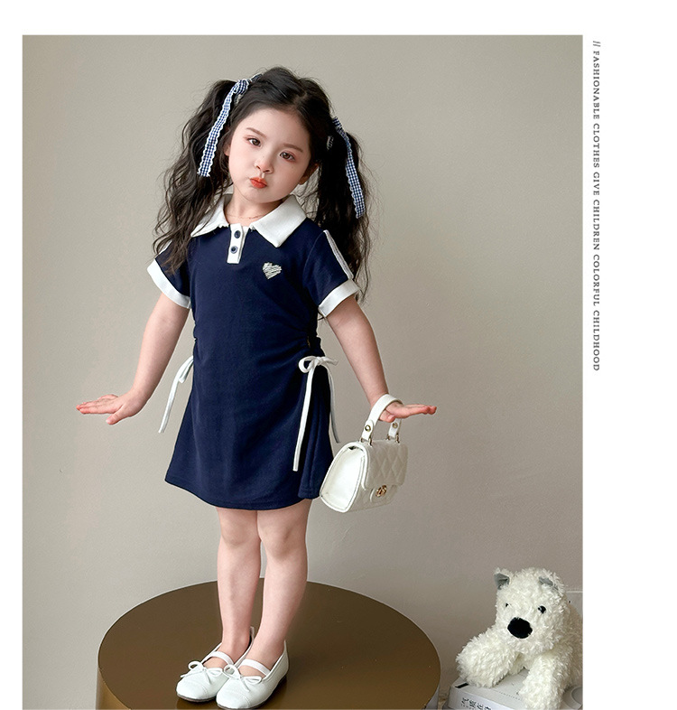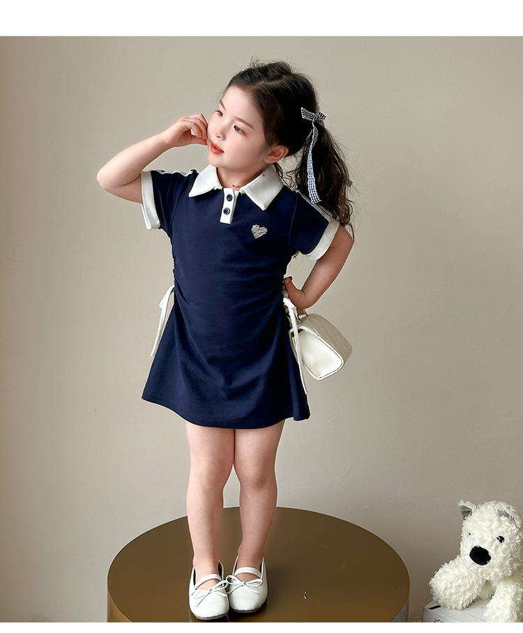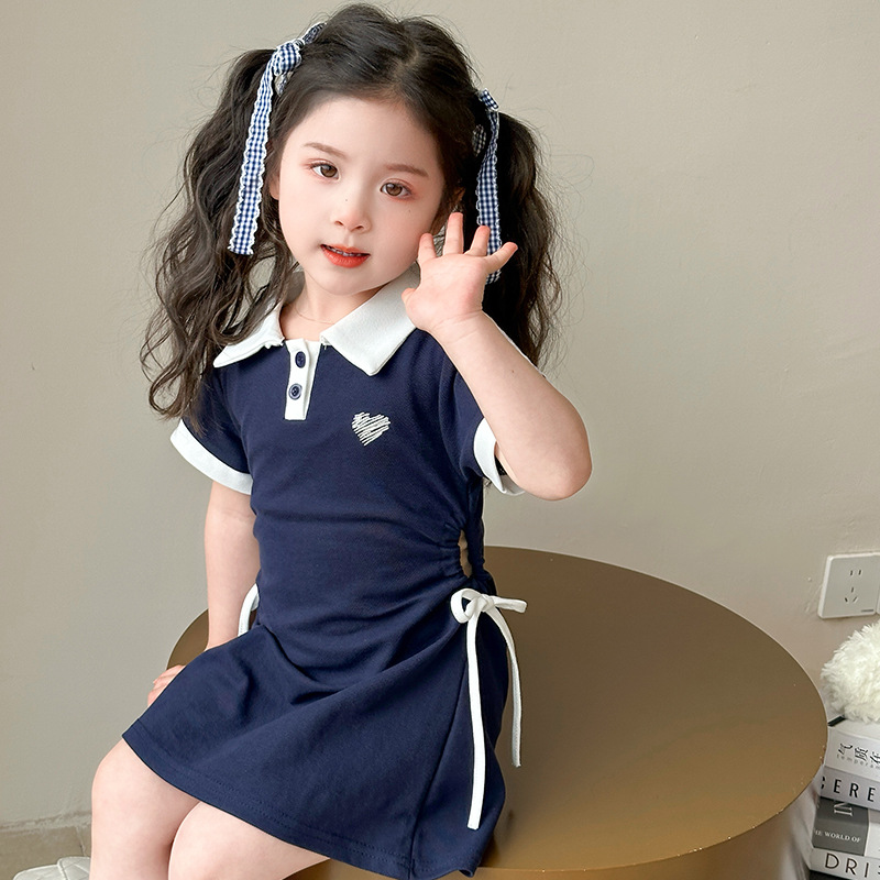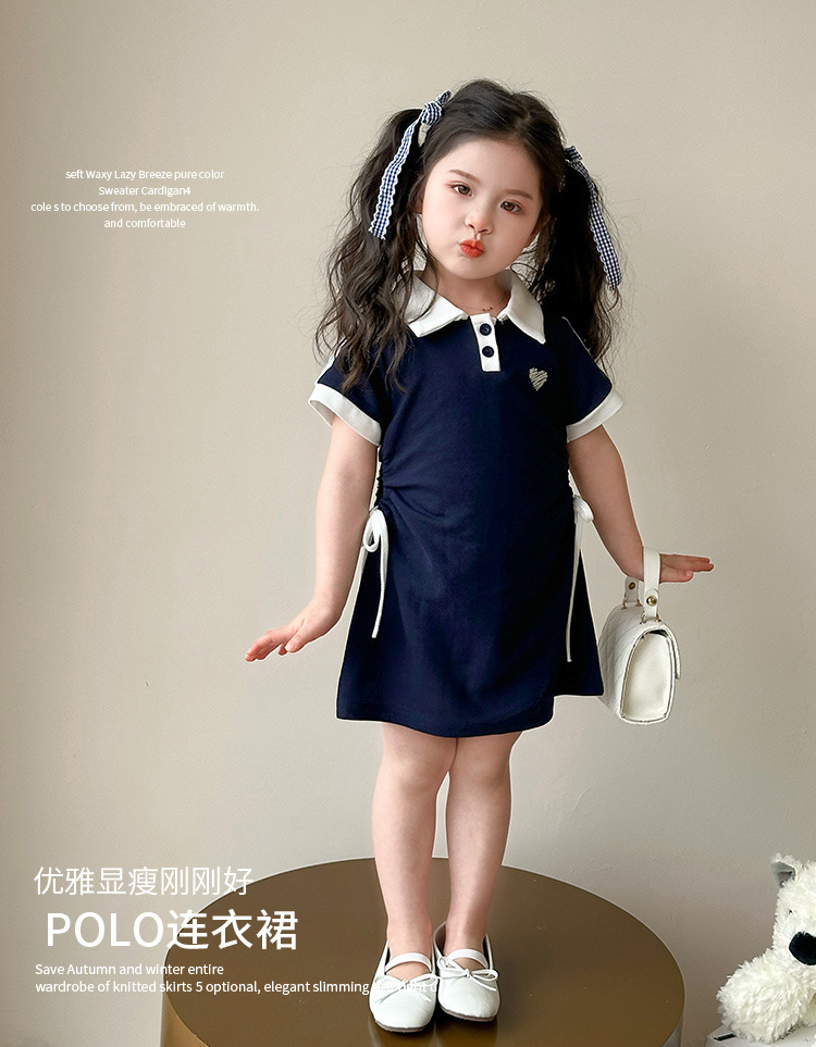여자 한국 대학 스타일 폴로 원피스 2025 년 여름 새로운 어린이 소녀 그리기 스타일 공주 치마스토어 가기