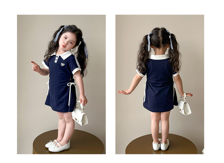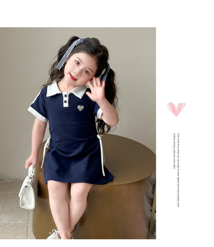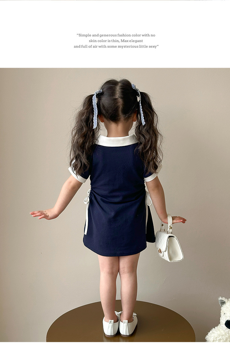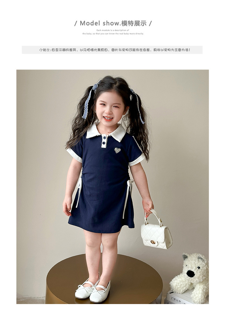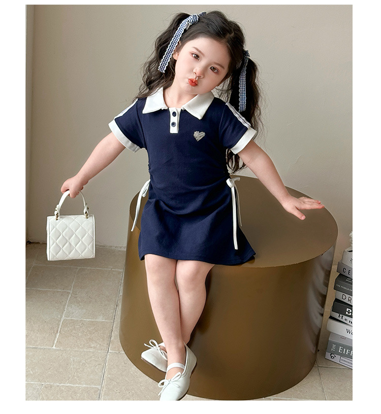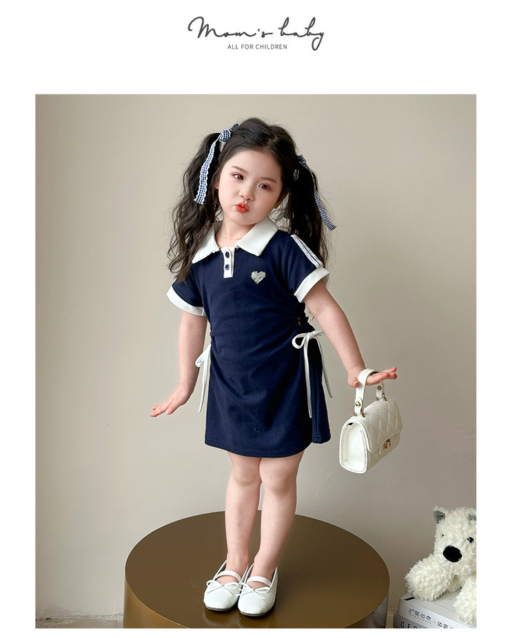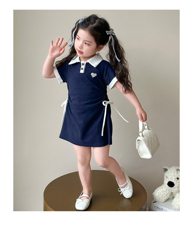 여자 한국 대학 스타일 폴로 원피스 2025 년 여름 새로운 어린이 소녀 그리기 스타일 공주 치마스토어 가기