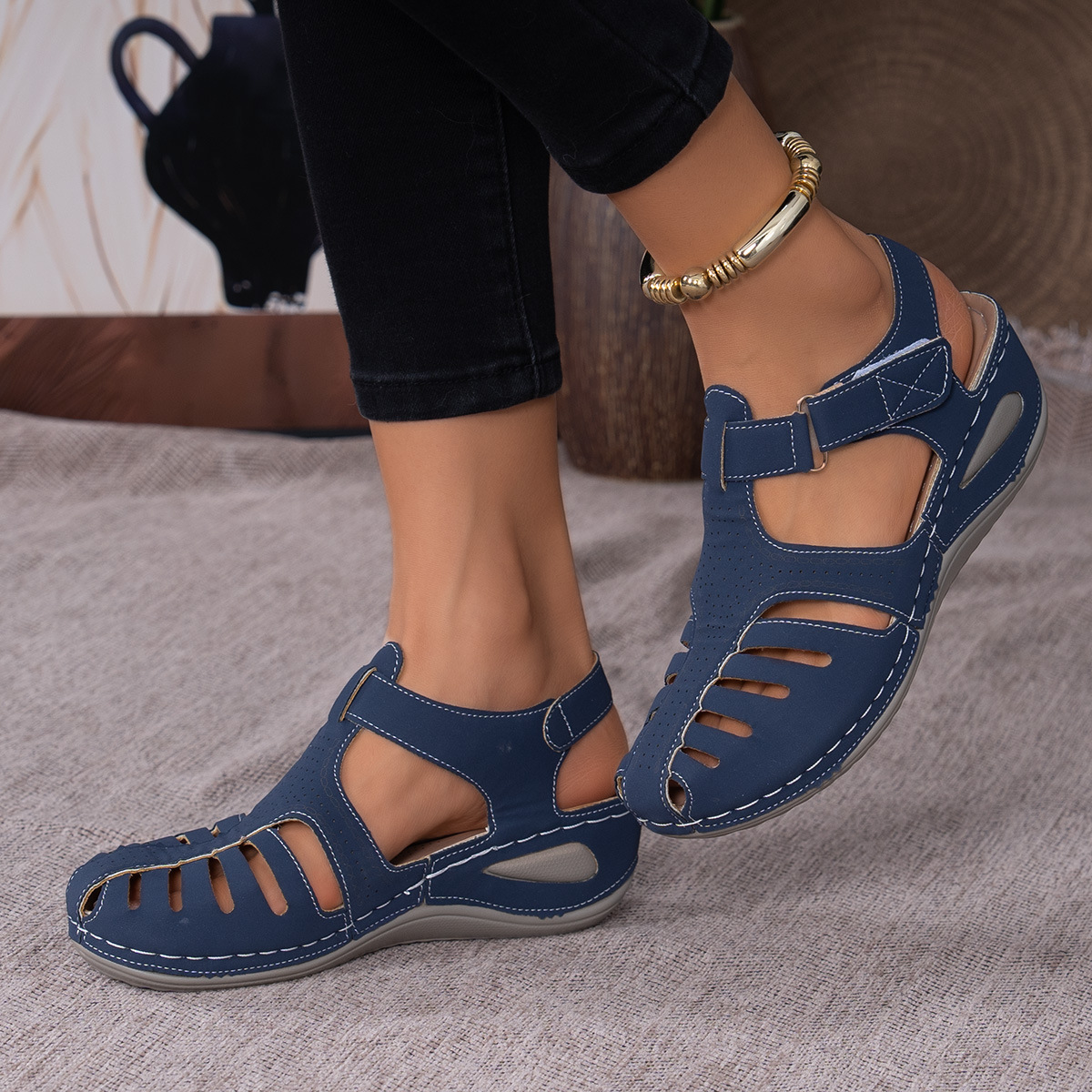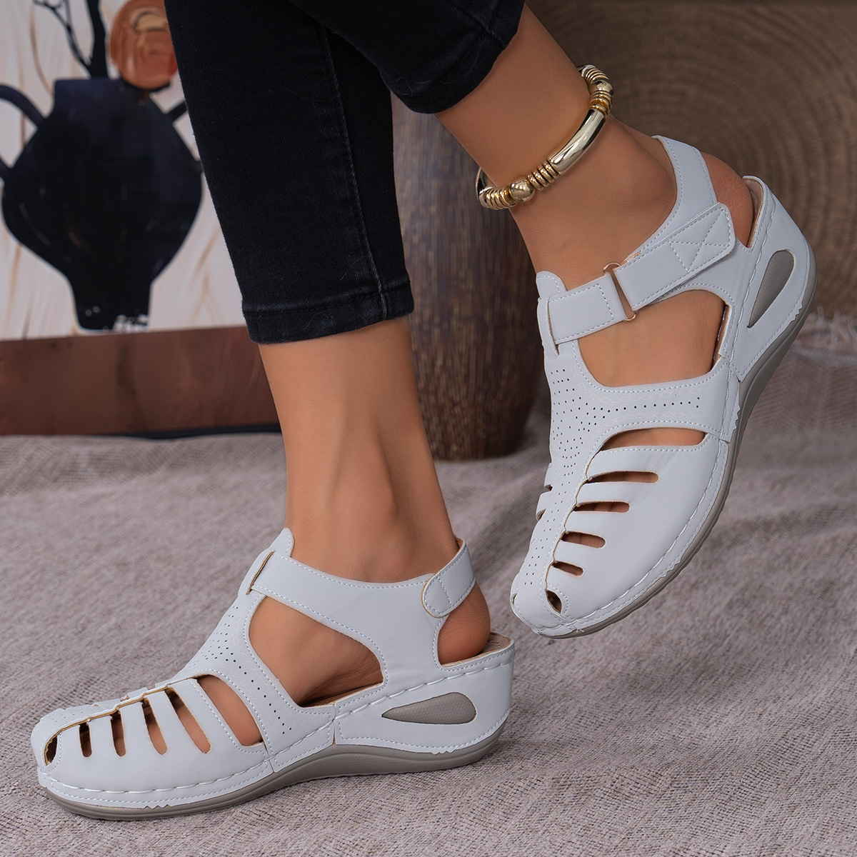 2025 새로운 대외 무역 여성 여름 두꺼운 밑창 반 발가락 중공 통기성 샌들 두꺼운 밑창 라운드 발가락 캐주얼 샌들 여성