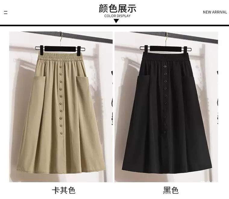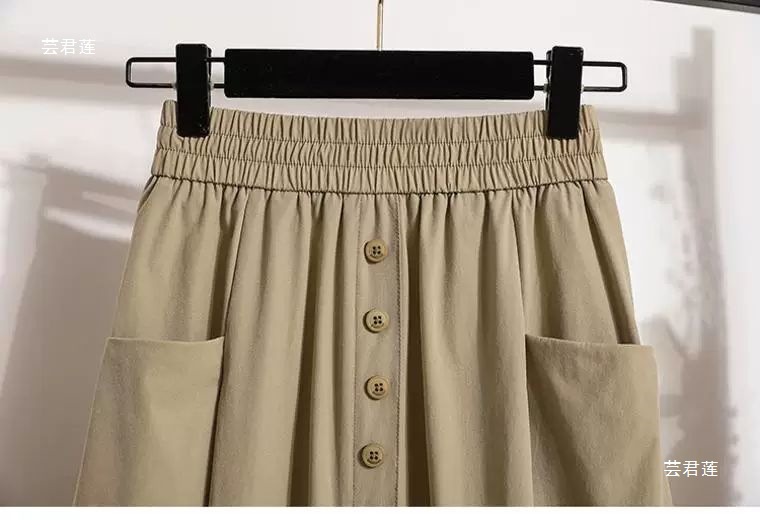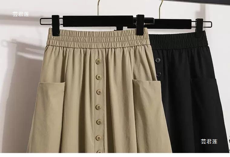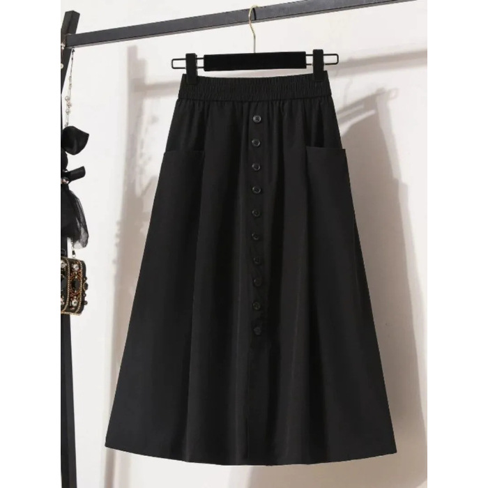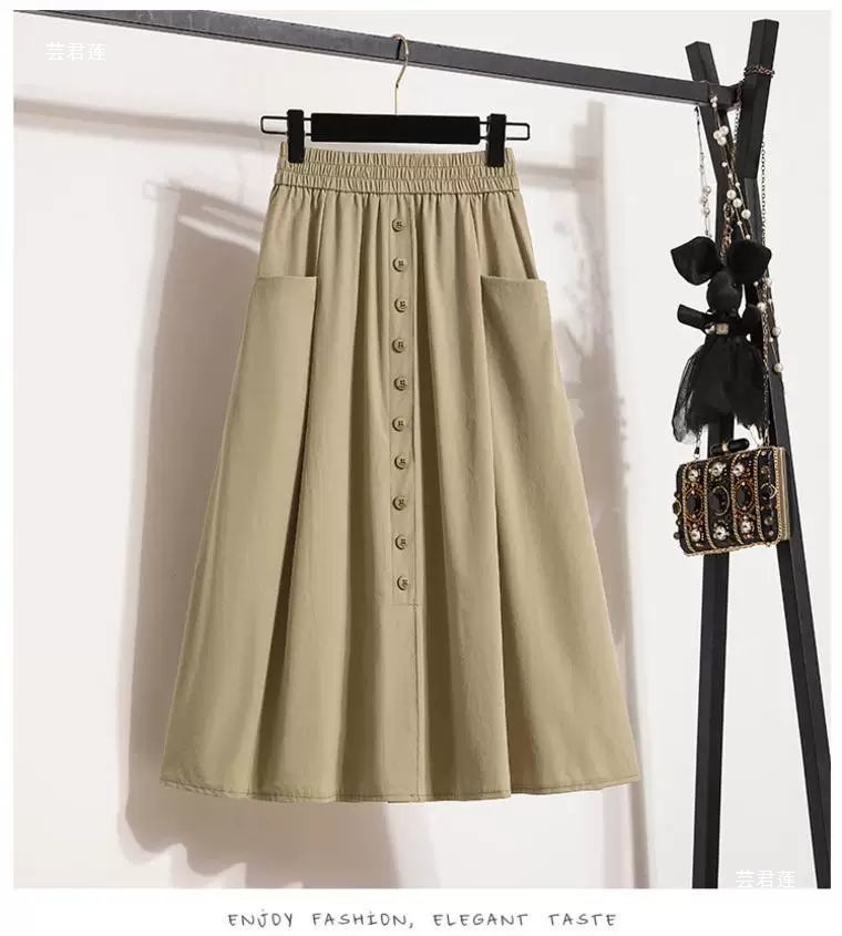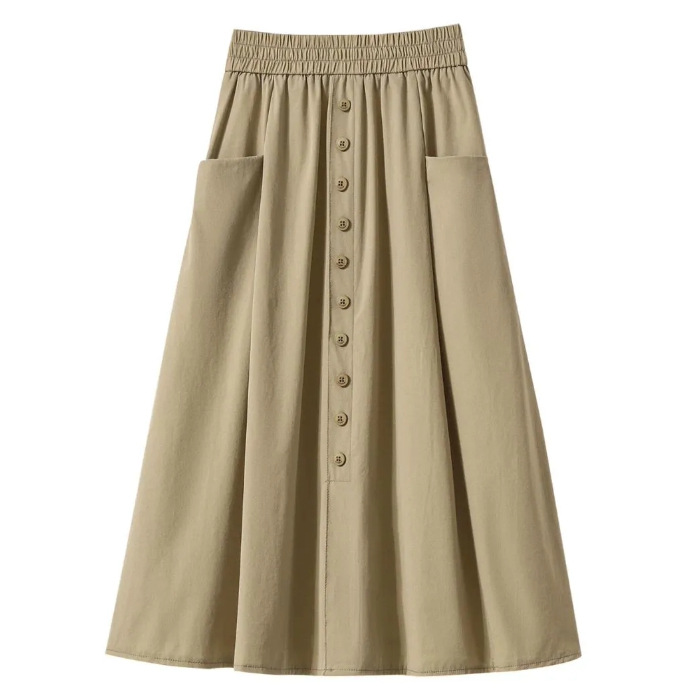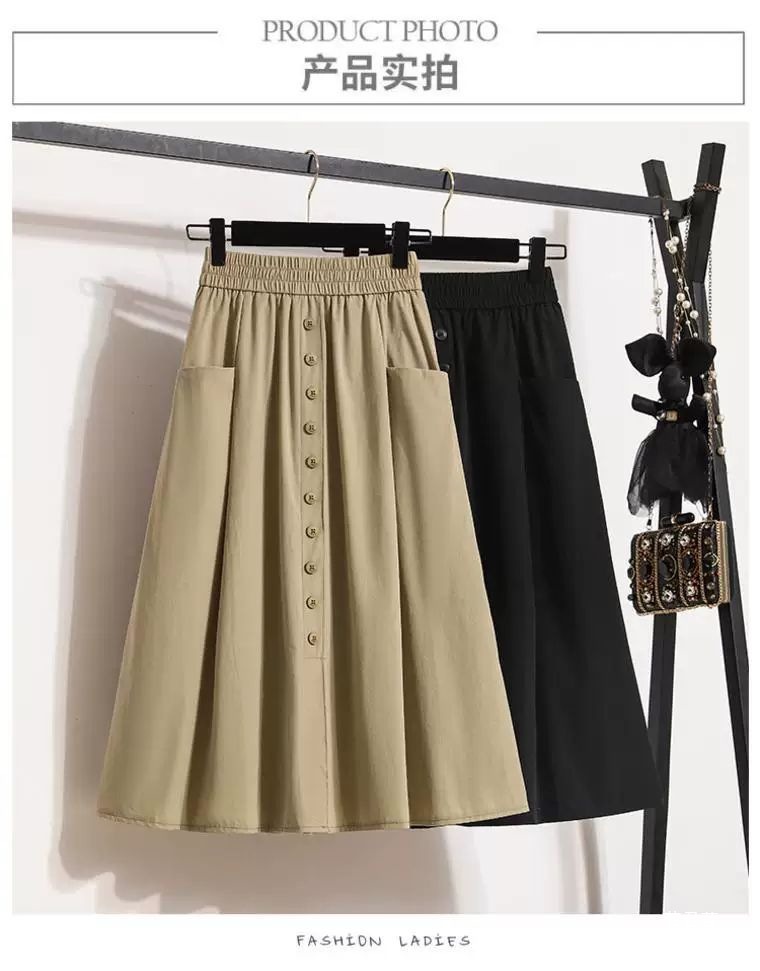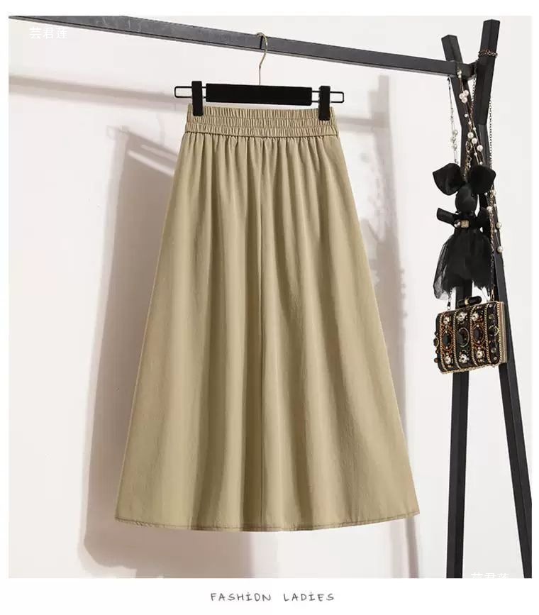 여성용 여름 얇은 스커트 2025 새로운 하이 웨이스트 a 라인 대형 슬리밍 중간 길이 작업복 대형 밑단스토어 가기