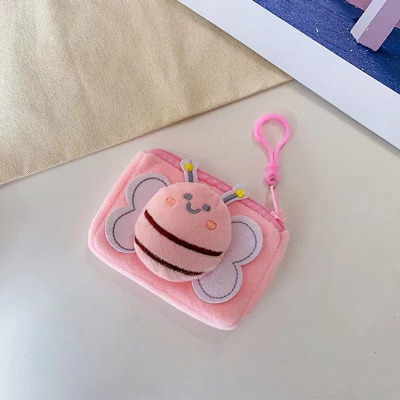 귀여운 소녀 하트 작은 꿀벌 만화 미니 동전 지갑 펜던트 만화 플러시 헤드폰 보관 가방 인 펜던트스토어 가기