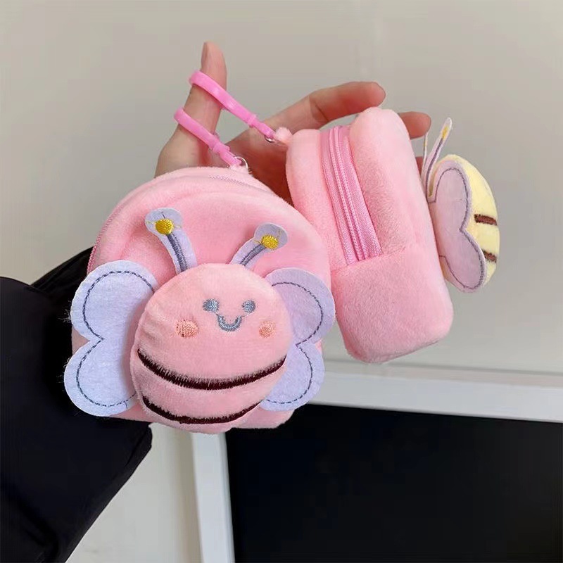 귀여운 소녀 하트 작은 꿀벌 만화 미니 동전 지갑 펜던트 만화 플러시 헤드폰 보관 가방 인 펜던트