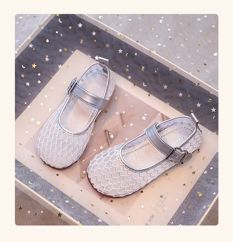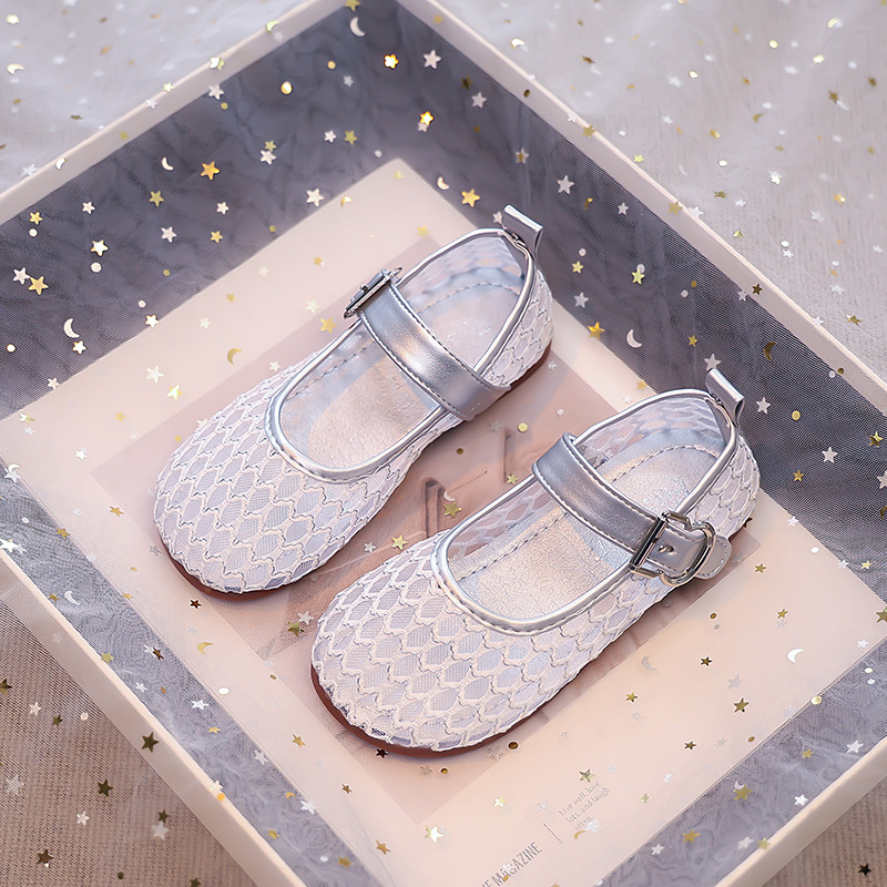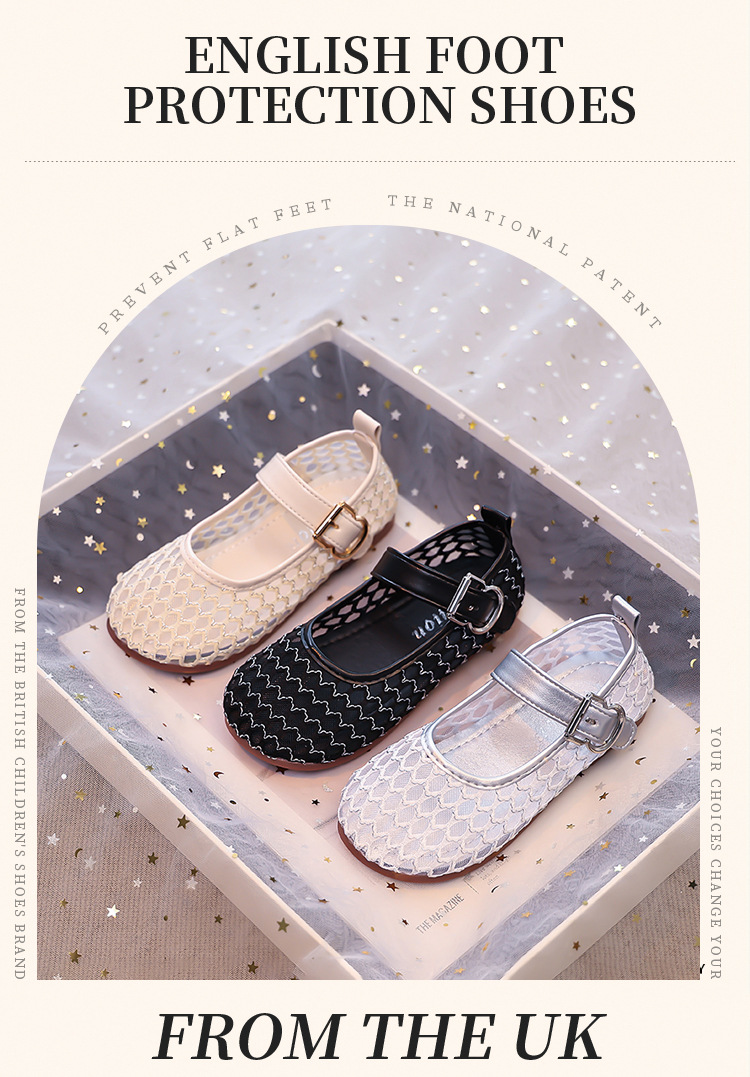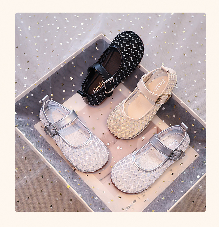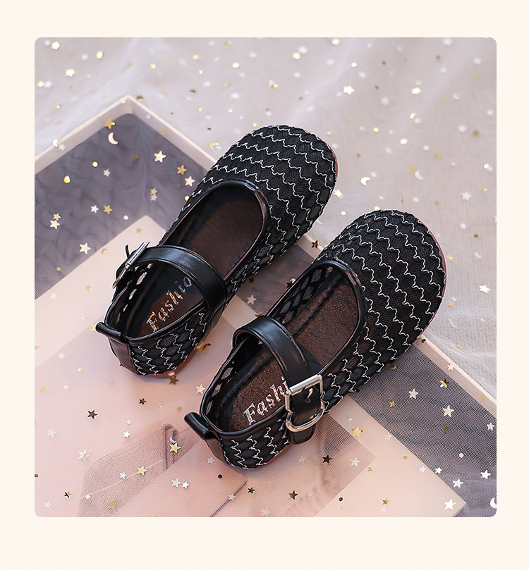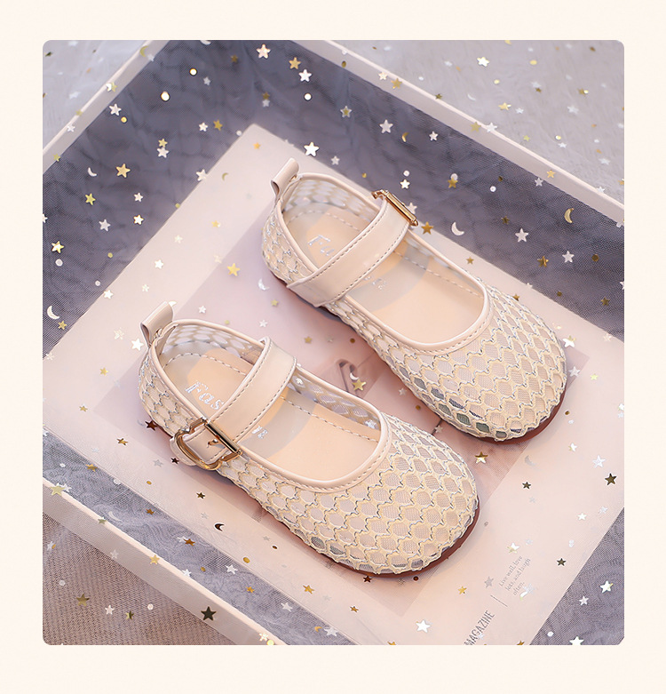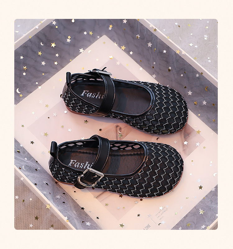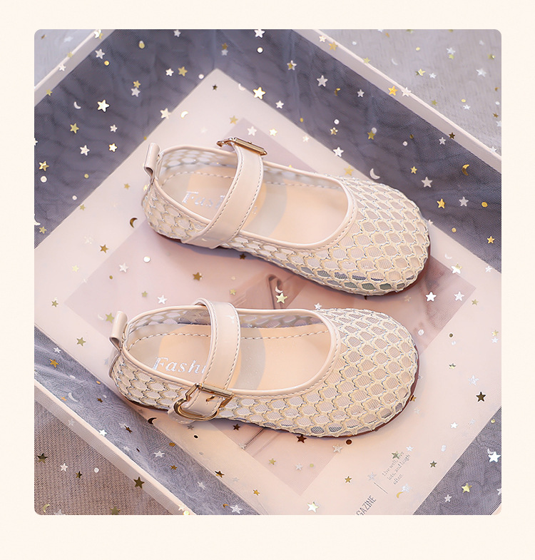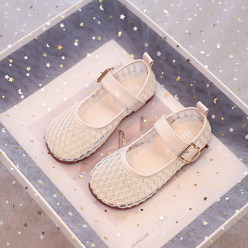 소녀 중공 그물 샌들 2025 여름 어린 소녀 단색 성능 작은 단일 레이어 신발 중소 어린이 어린이 신발