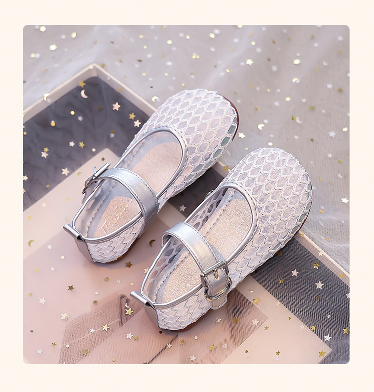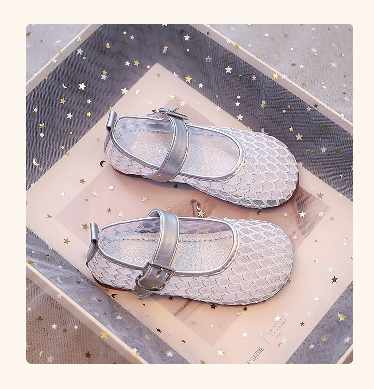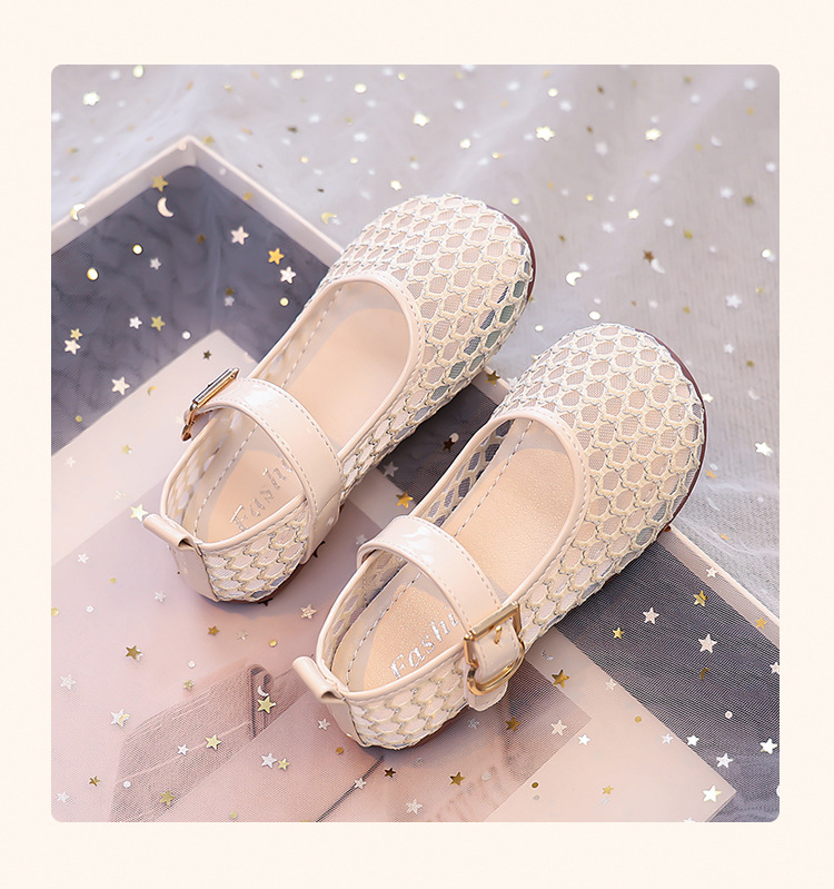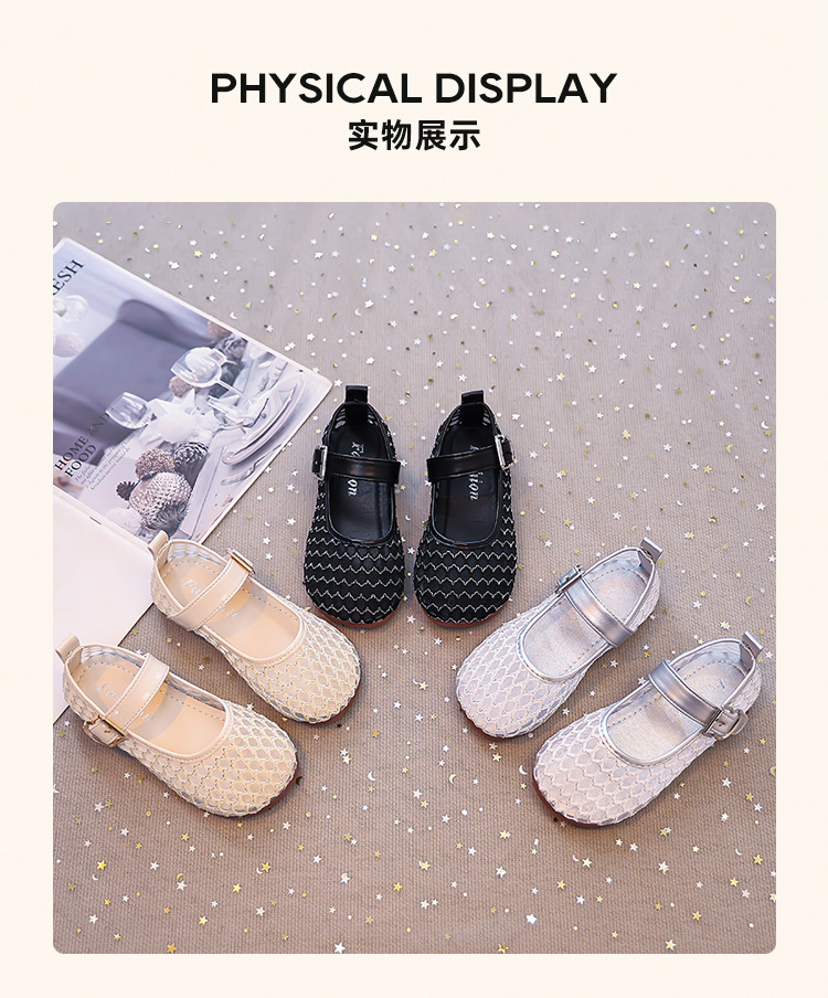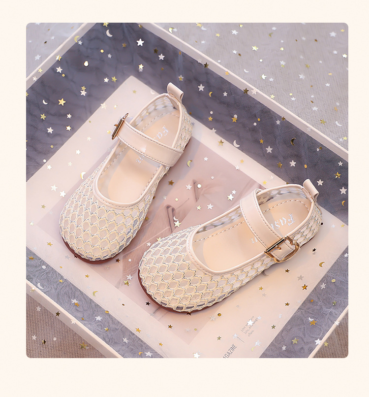 소녀 중공 그물 샌들 2025 여름 어린 소녀 단색 성능 작은 단일 레이어 신발 중소 어린이 어린이 신발스토어 가기