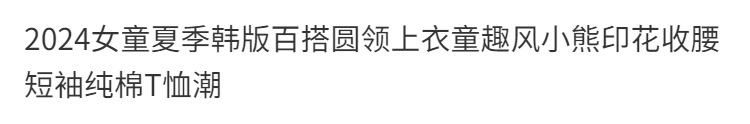 여름 한국 스타일 다용도 라운드 넥 탑 어린이 같은 스타일 곰 프린트 허리 짧은 소매 순수 코튼 티셔츠 트렌디