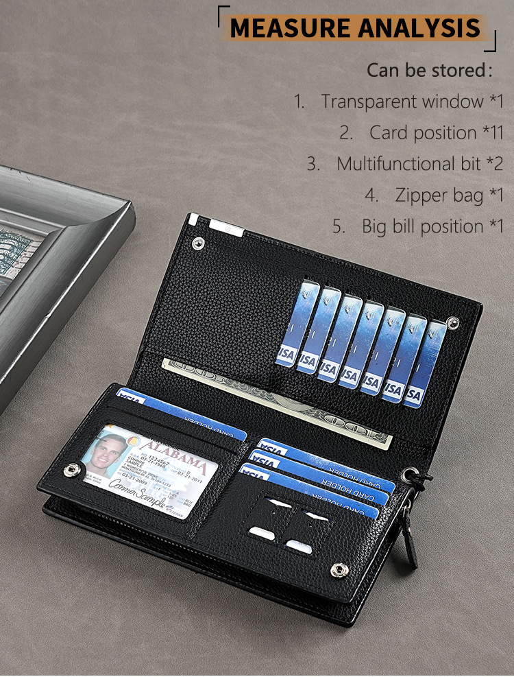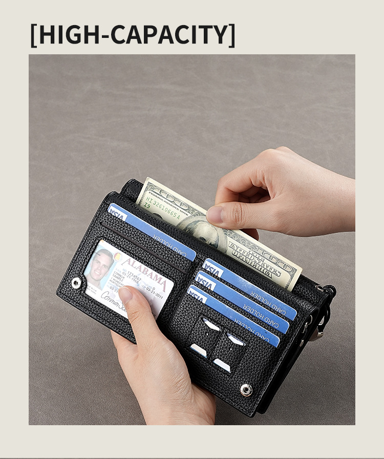새로운 국경 핫 셀러 남성용 긴 고품질 지갑 지퍼 다기능 카드 레저 비즈니스 지갑 조수스토어 가기