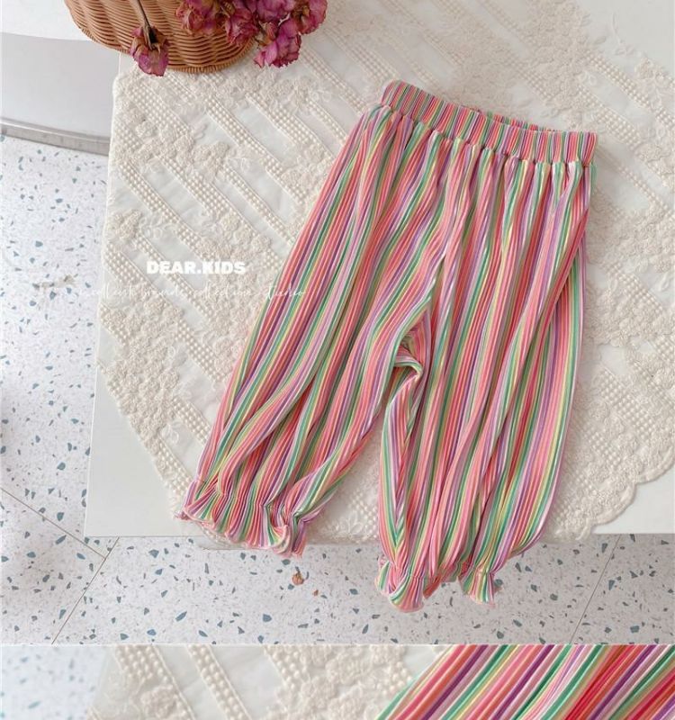 여름 새 여자 바지 커프 바지 1-6 세 아기 무지개 색 줄무늬 한국 스타일 바지 모기 방지 바지스토어 가기