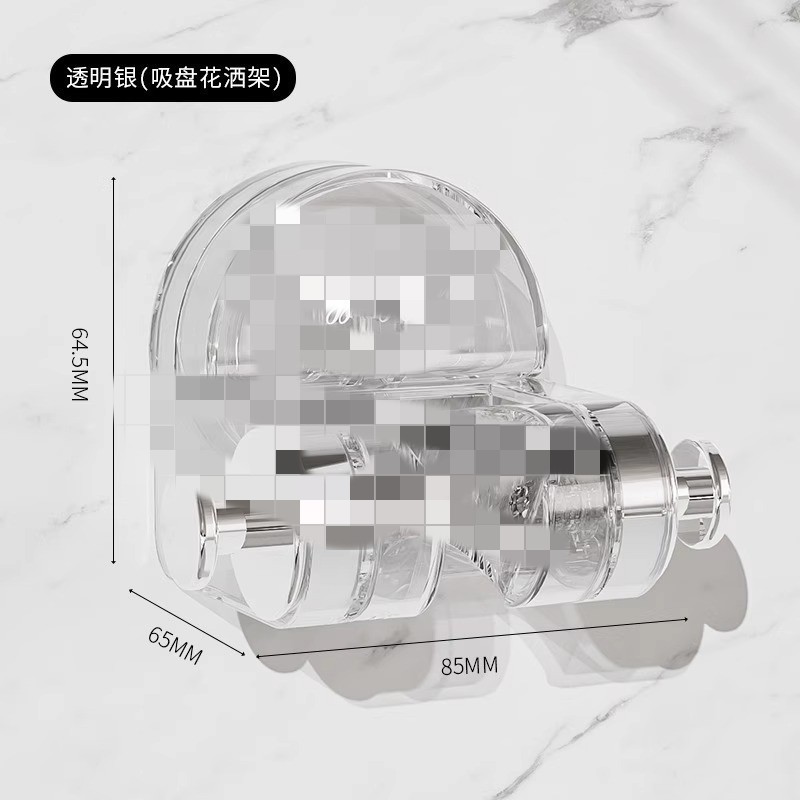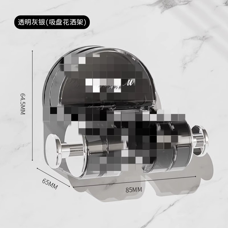 • 버튼 흡입 컵 샤워 헤드 투명 그레이 실버