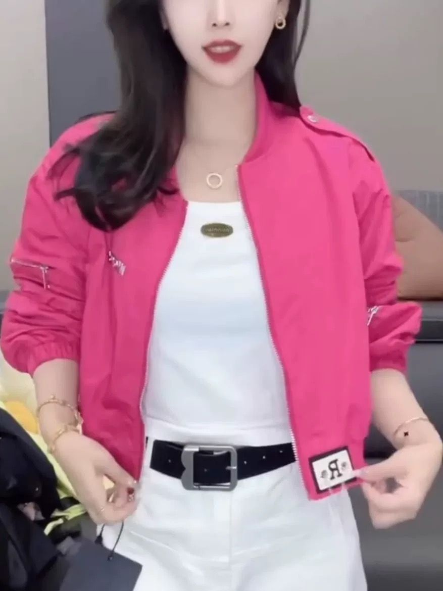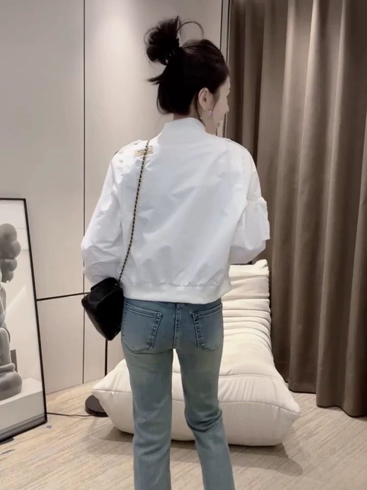 유럽 제품 2025 봄, 가을 신상품 스탠드 칼라 스몰 재킷 여성 캐주얼 탑 연령 감소 짧은 한국 스타일 외국 스타일 재킷스토어 가기