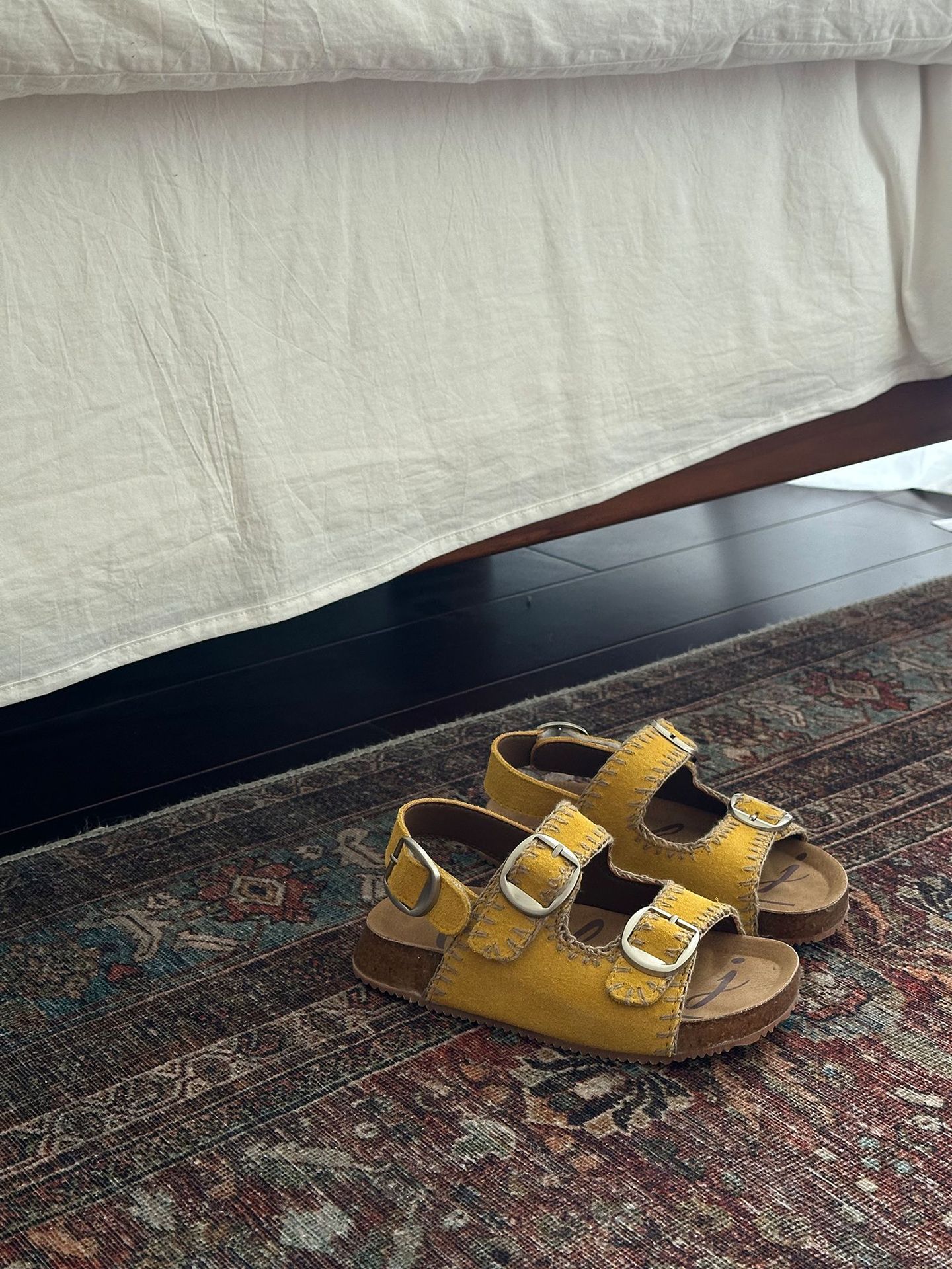한국식 어린이 수제 가죽 보켄 샌들 2025 여름 새 소년 소녀 오픈 발가락 소프트 솔 샌들스토어 가기