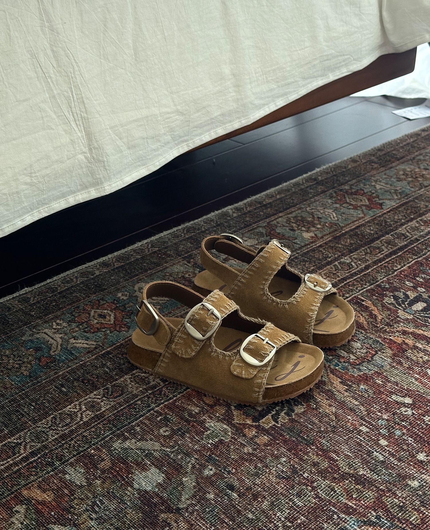 한국식 어린이 수제 가죽 보켄 샌들 2025 여름 새 소년 소녀 오픈 발가락 소프트 솔 샌들