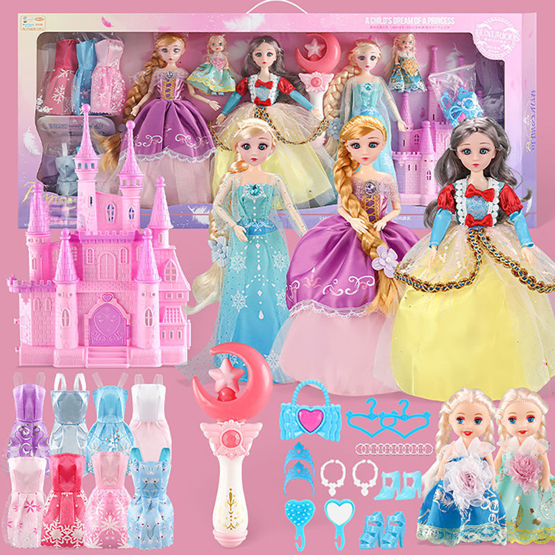 어린이 인형 세트 대형 선물 상자 소녀 장난감 공주 대형 드림 하우스 아이샤 아이샤 얼음과 눈