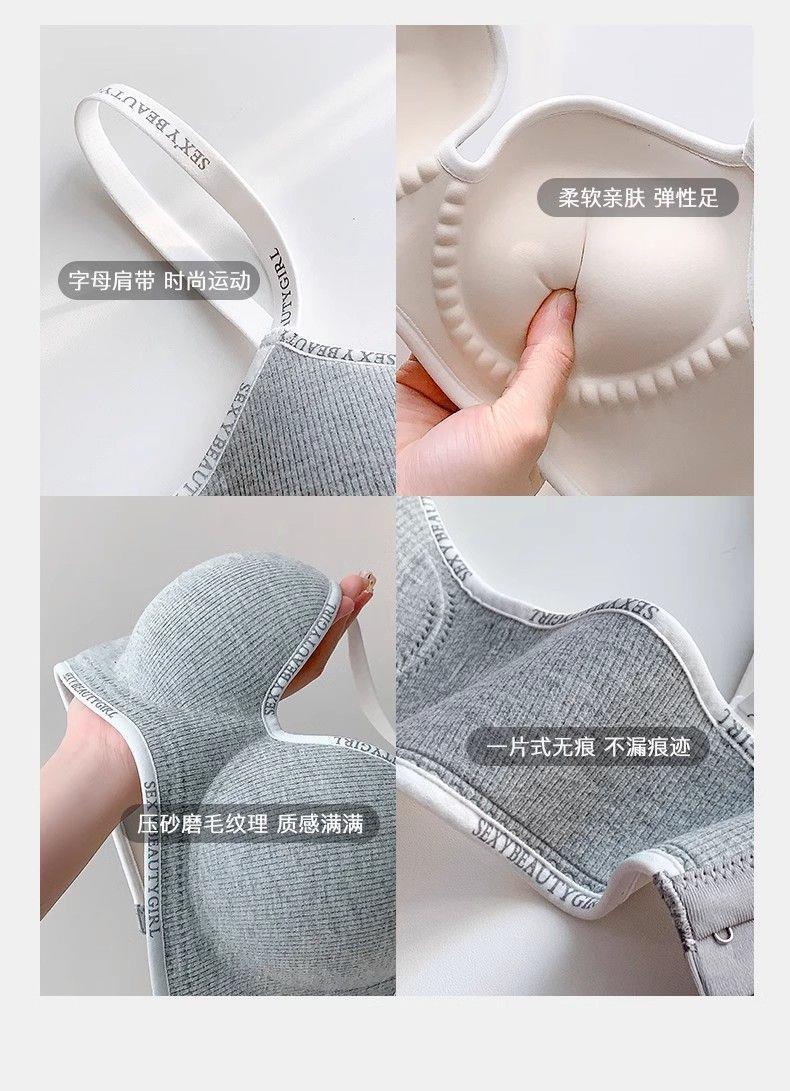 가슴이 작은 여성을 위한 두툼하고 큰 속옷, 푸쉬업 레터 스트랩, 스포츠 스타일, 가슴 수축, 빈 컵 없는 브라스토어 가기