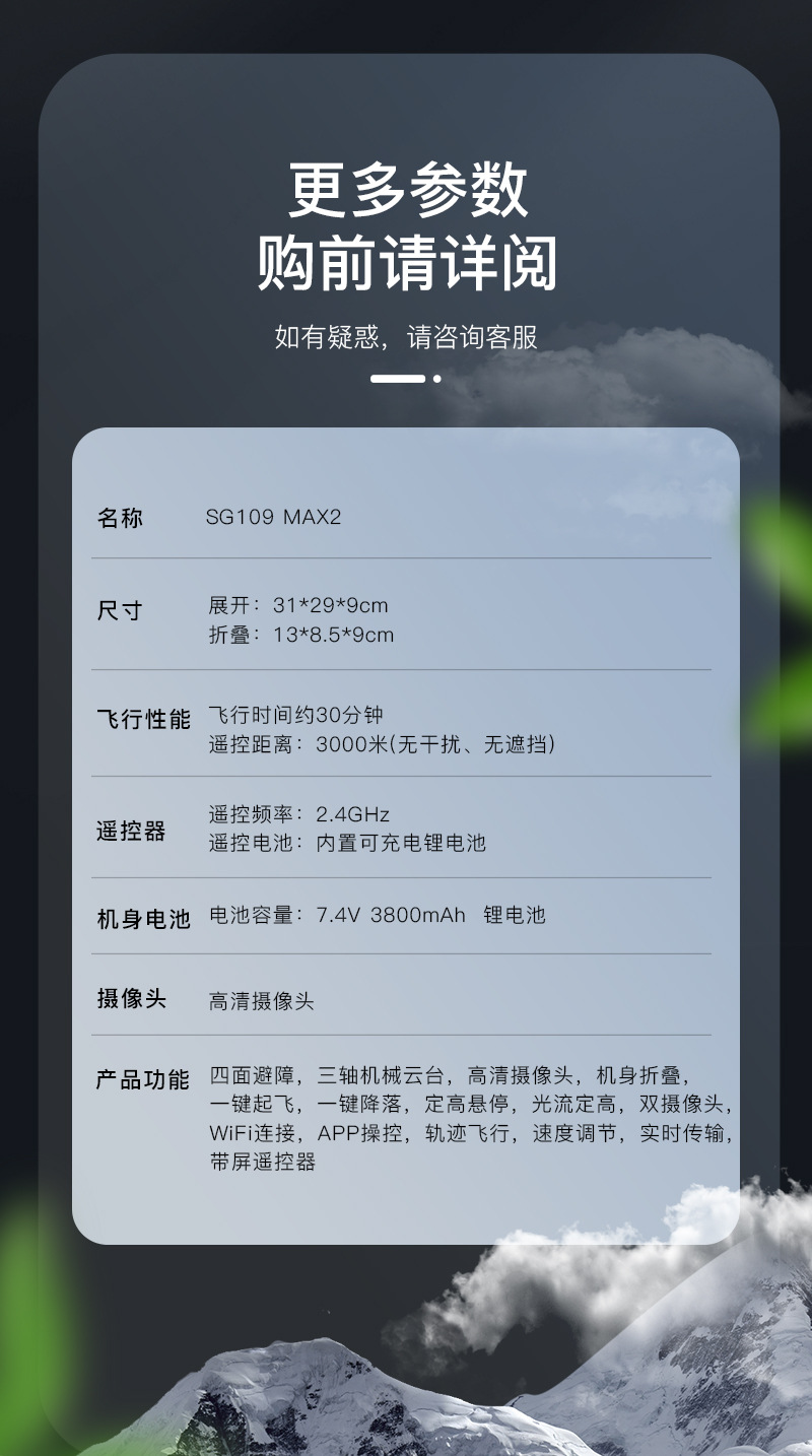 화면 원격 제어 장애물 회피 GPS 드론 3축 짐벌 HD 항공 사진 원격 제어 항공기와 동물 SG109MAX2스토어 가기