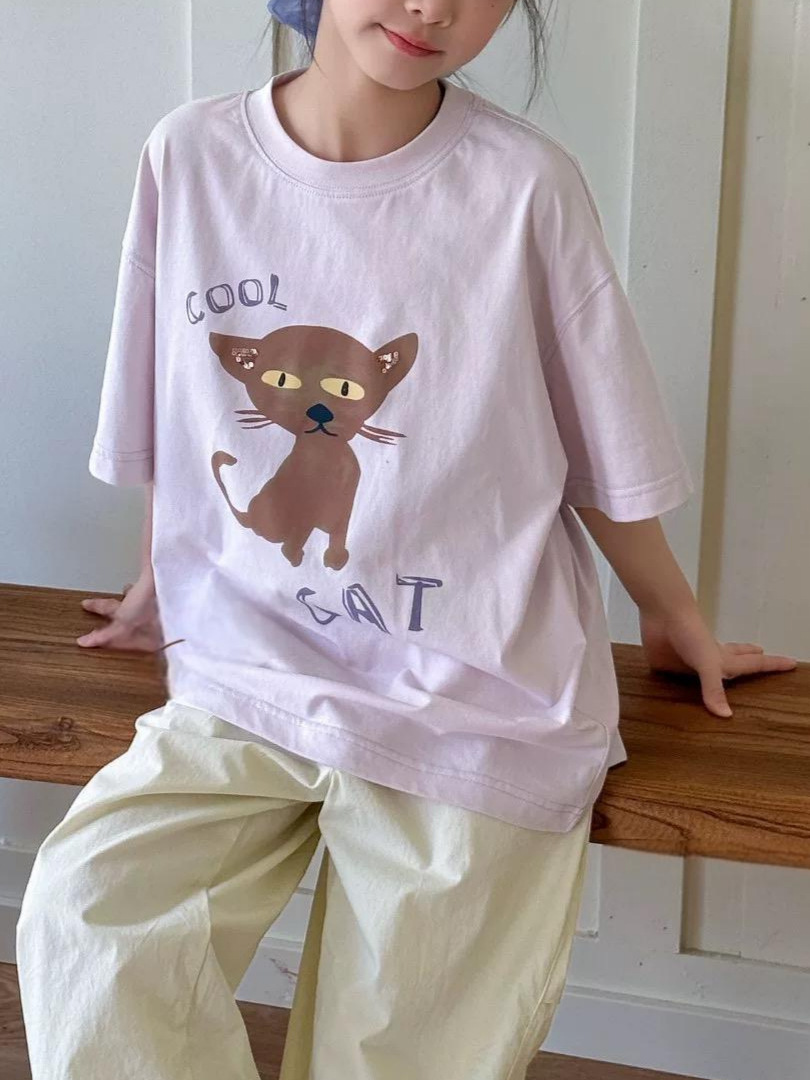여자 티셔츠 2025 새 시즌 아동복 한국식 반팔 여자 서양식 루즈 탑 여름 얇은 풀오버스토어 가기