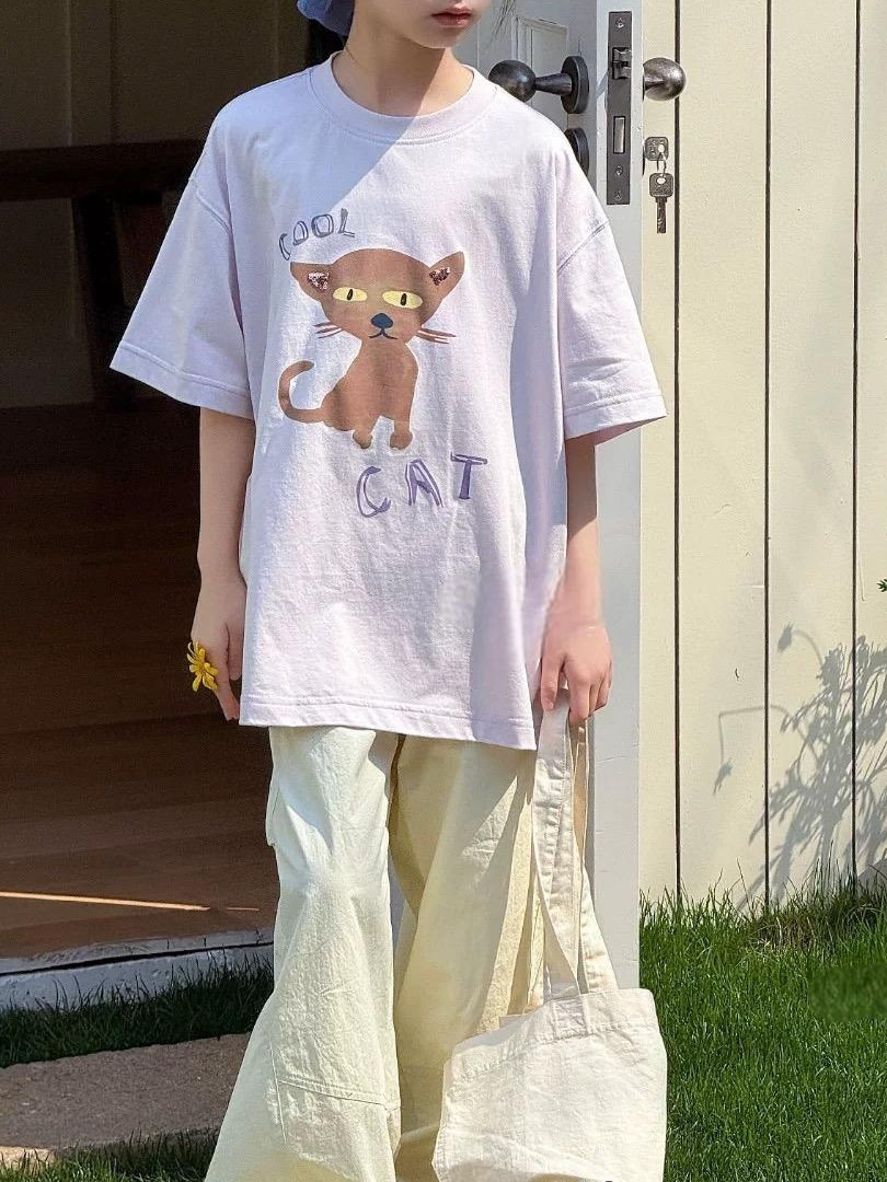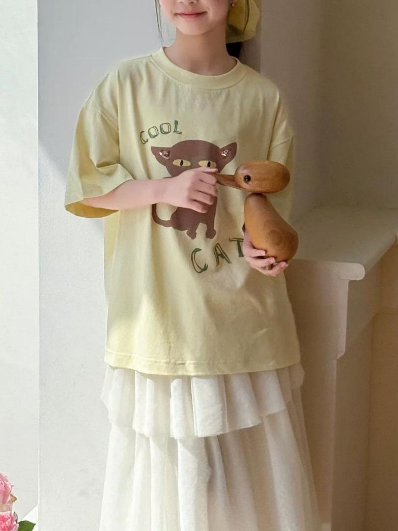 여자 티셔츠 2025 새 시즌 아동복 한국식 반팔 여자 서양식 루즈 탑 여름 얇은 풀오버