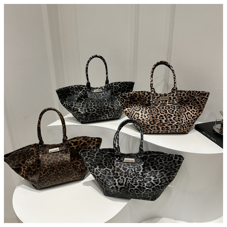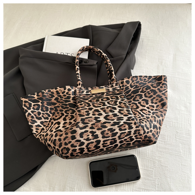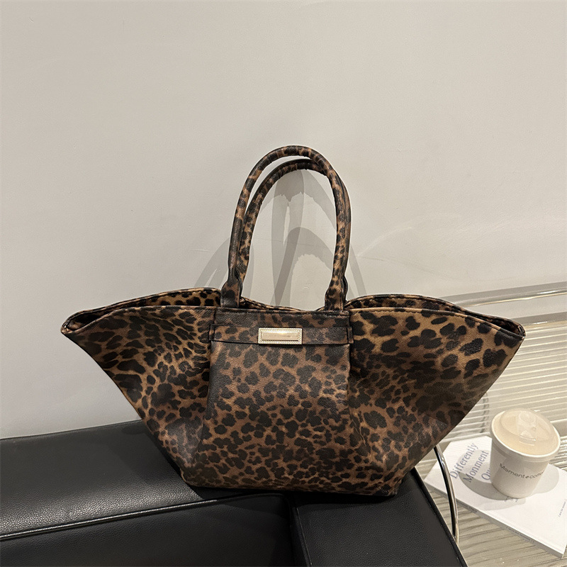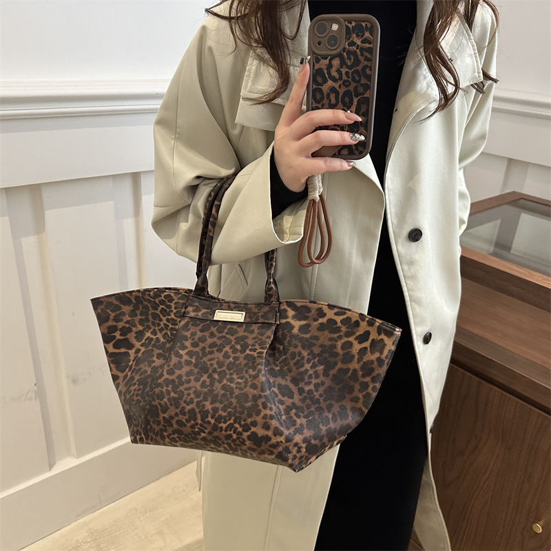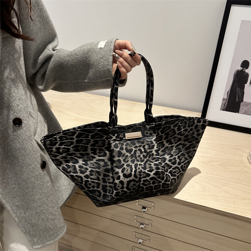 레오파드 프린트 트렌디 패션 다재다능한 캐주얼 맞춤형 토트 백 여성용 대용량 디자인 통근 복고풍 숄더백