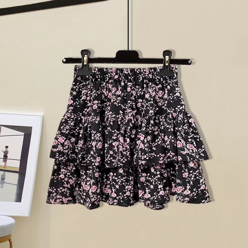 플러스 사이즈 통통녀 꽃 케이크 치마 여성 여름 디자인 센스 니쉬 약간의 지방 슬림 A-라인 짧은 치마