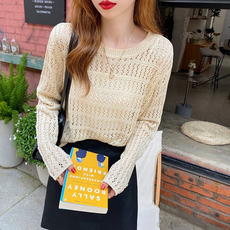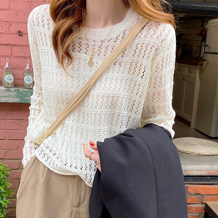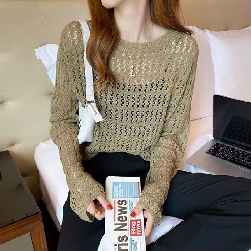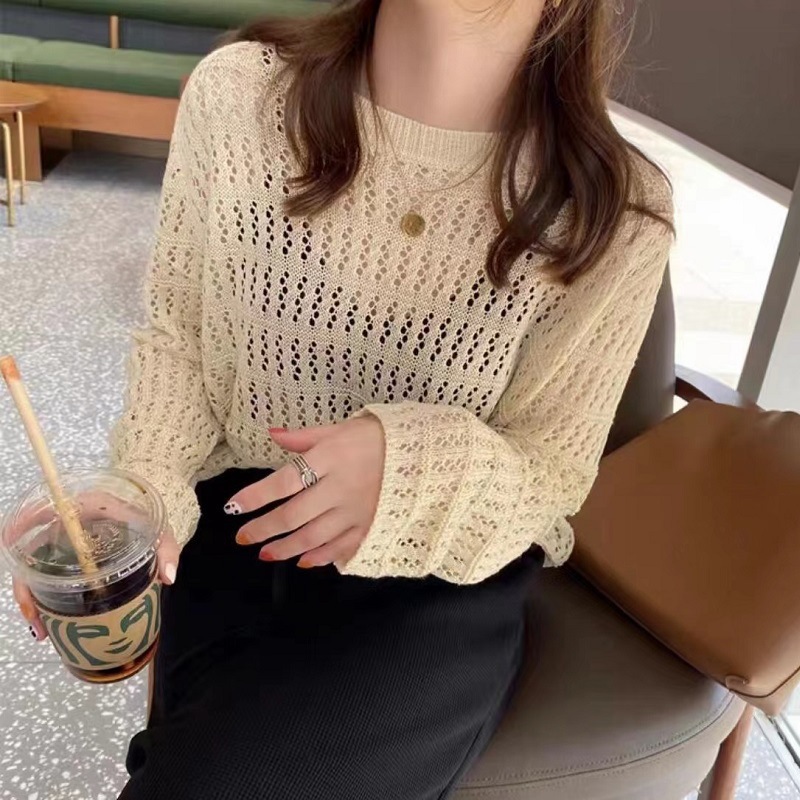 2023 느슨한 슬림 외부 스웨터 얇은 베이스 셔츠 긴 소매 탑 트렌디 한 할로우 스웨터 여성의 봄 새로운 도착