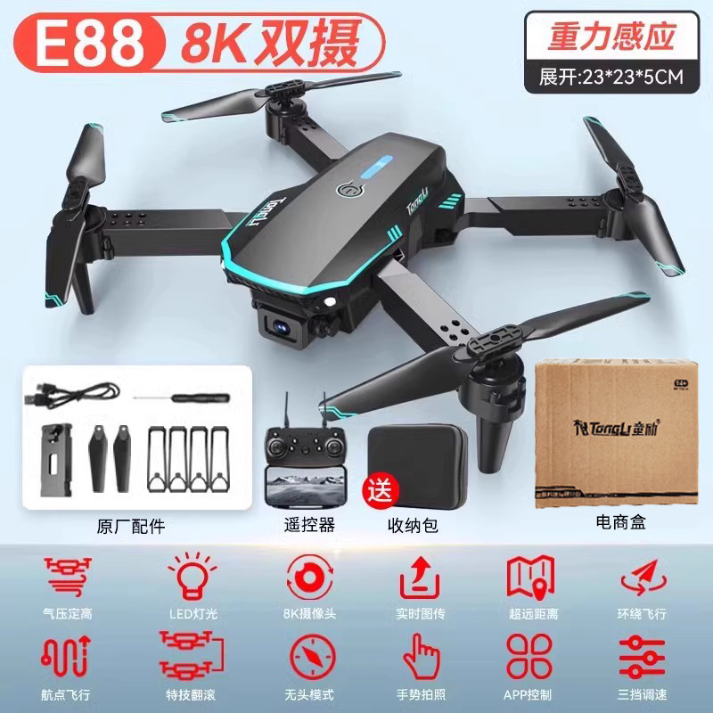 • E88 단일 카메라 모델 - 블랙 [8K 고화질 픽셀 + 지능형 높이 고정 항공 사진]