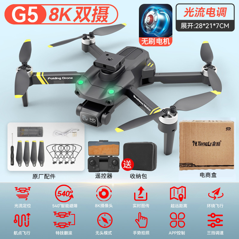 • G5 브러시리스 옵티컬 플로우 전자 조절 모델 - 그레이 [새롭게 업그레이드된 5면 장애물 회피] 8K 고화질 듀얼 카메라 + 브러시리스 모터 + 옵티컬 플로우 포지셔닝 + 전자 조절 가능 렌즈 + 보관 가방