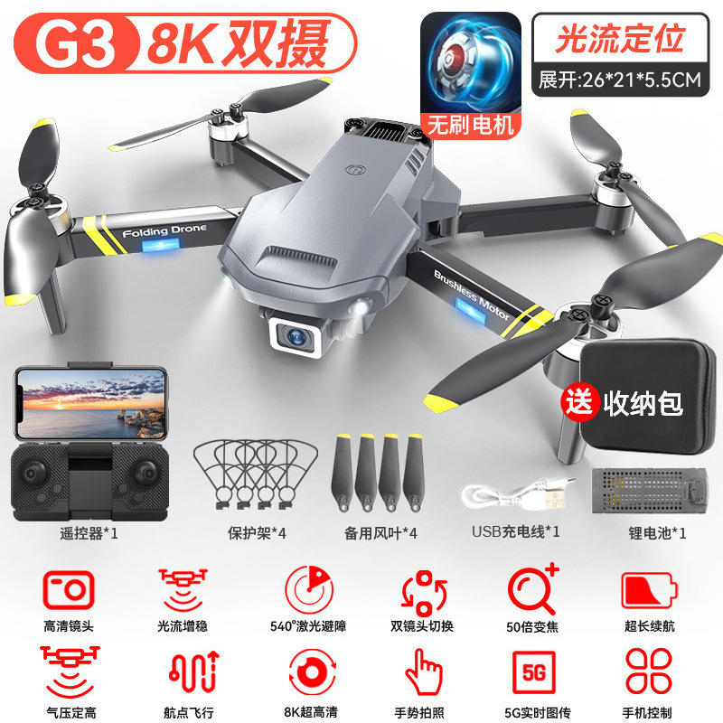 • G3 브러시리스 옵티컬 플로우 ESC 모델 - 그레이 [새롭게 업그레이드된 5면 장애물 회피] 8K 고화질 듀얼 카메라 + 브러시리스 모터 + 옵티컬 플로우 포지셔닝 + 보관 가방