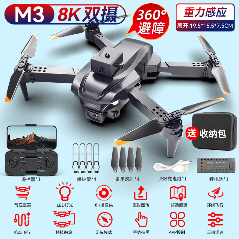• M3--항공 사진 없음, 초보자용 [360°장애물 회피 보호】무료 보관 가방 - 회색