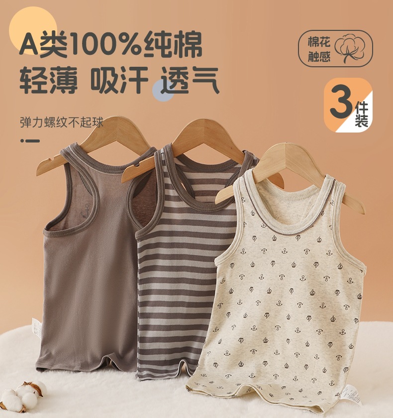3 팩 어린이 조끼 여름 얇은 아기 민소매 탑 티셔츠 비 형광 클래스 A 소년베이스 셔츠 학생