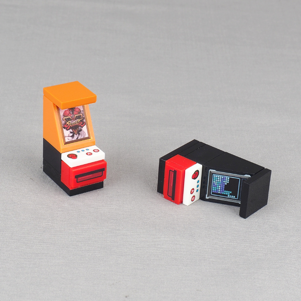 국경 간 경쟁 미니 게임 콘솔 빌딩 블록 조립 미니 피규어 큐브 파이트 바디 머신 비디오 게임 장면 작은 입자 장난감