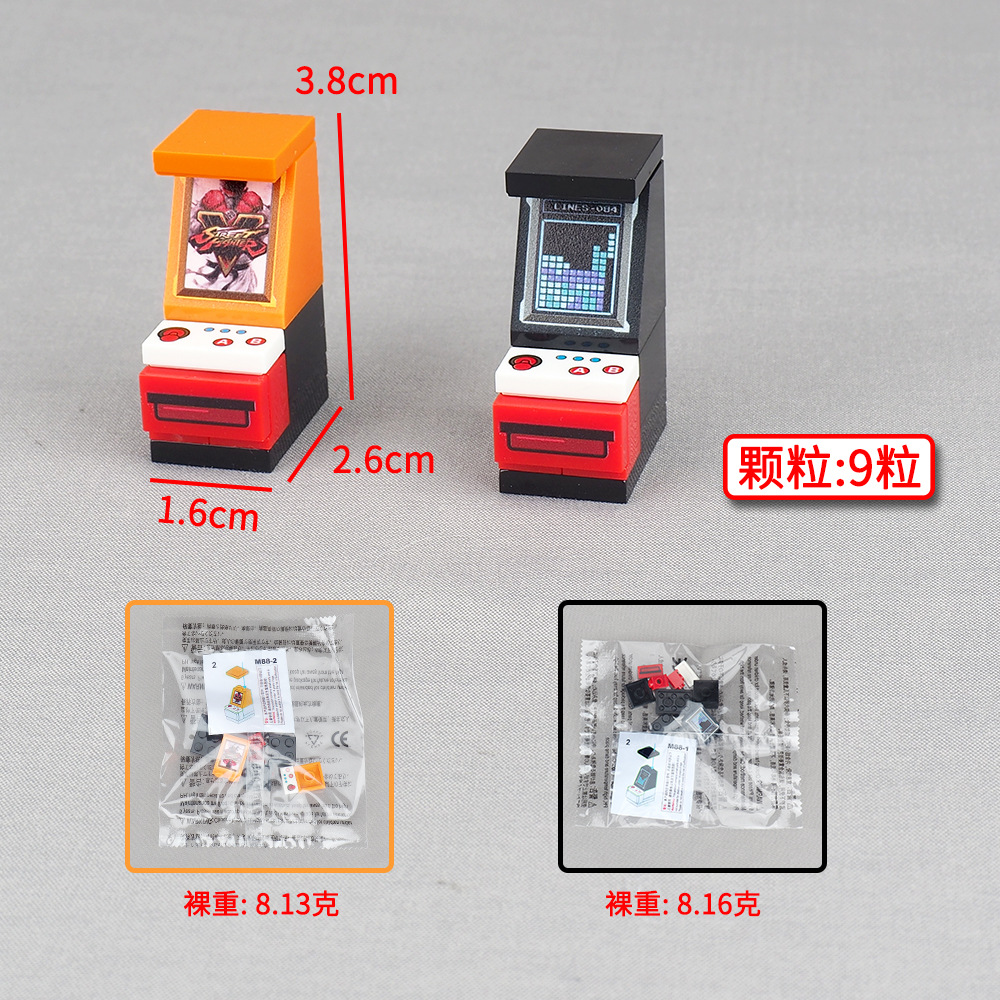 국경 간 경쟁 미니 게임 콘솔 빌딩 블록 조립 미니 피규어 큐브 파이트 바디 머신 비디오 게임 장면 작은 입자 장난감스토어 가기