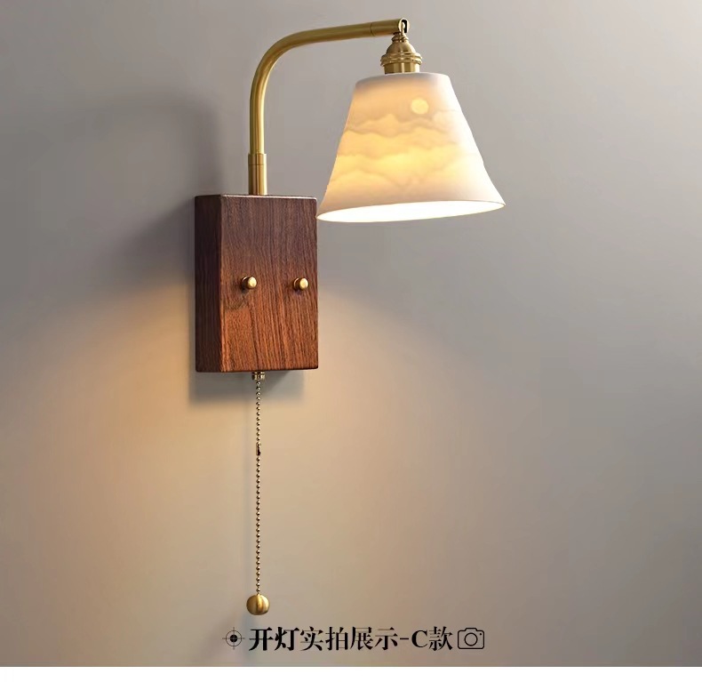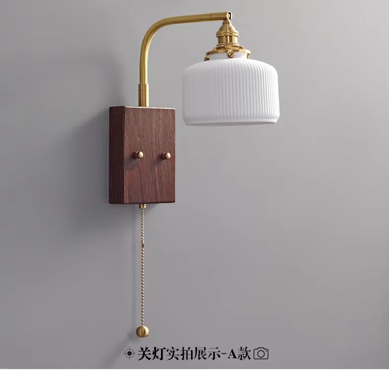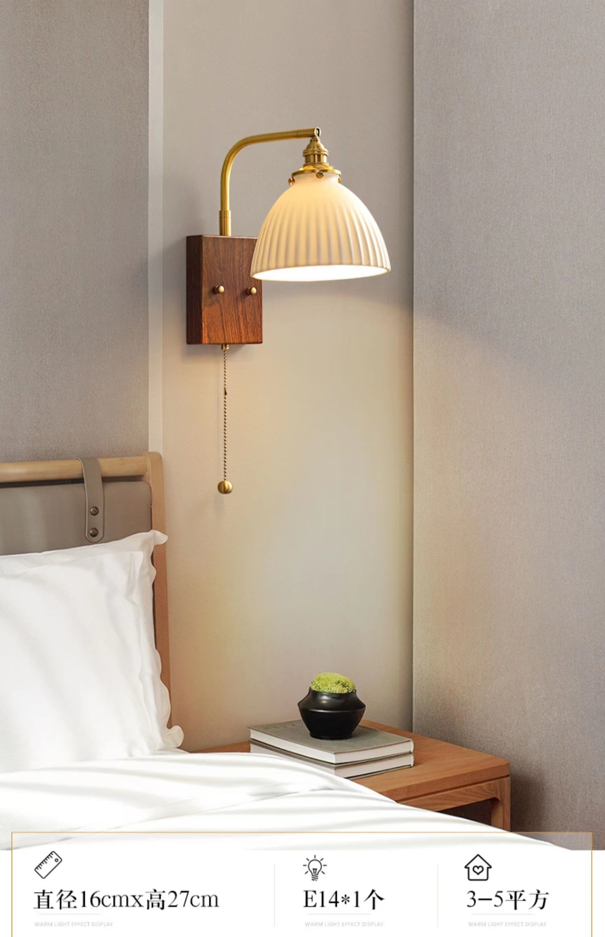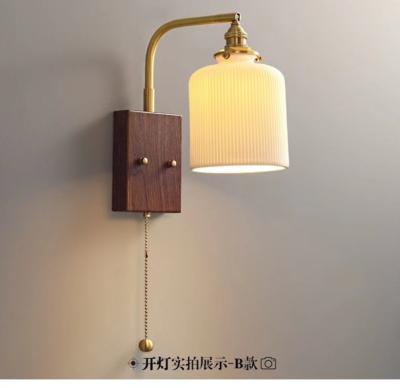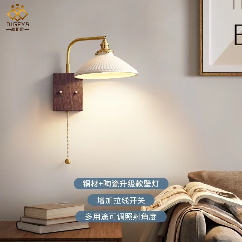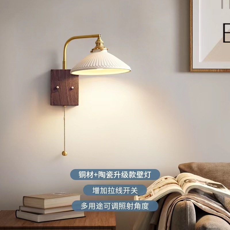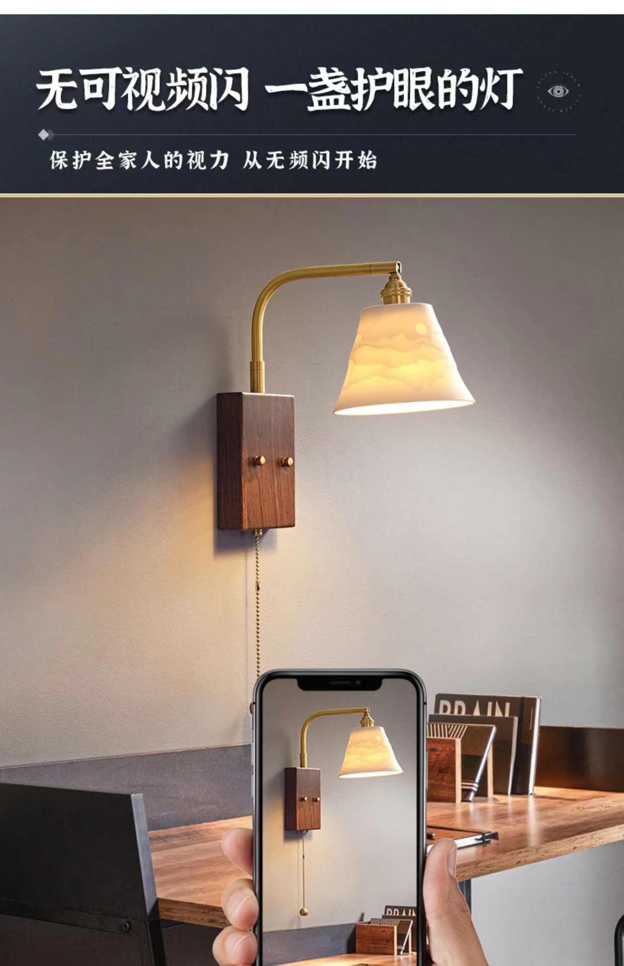 복고풍 이동식 호두 세라믹 벽 램프 새로운 중국 침대 옆 배경 벽 램프 홈스테이 케이블 모든 구리 램프스토어 가기