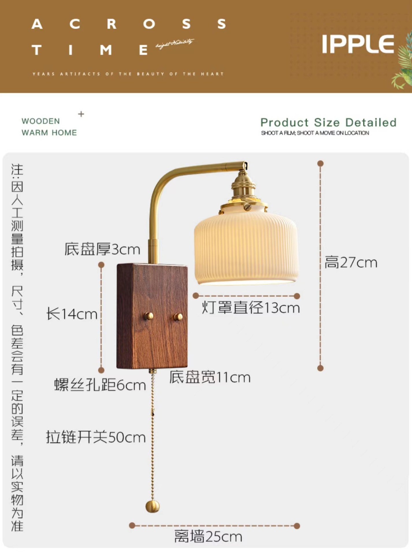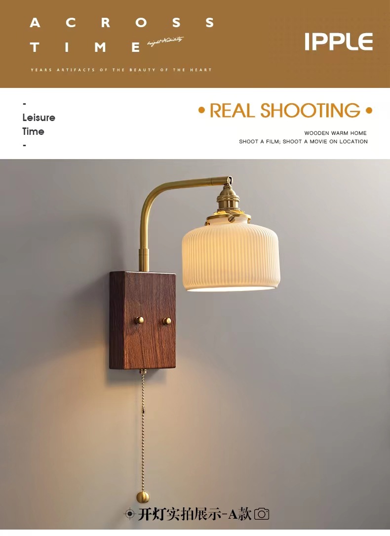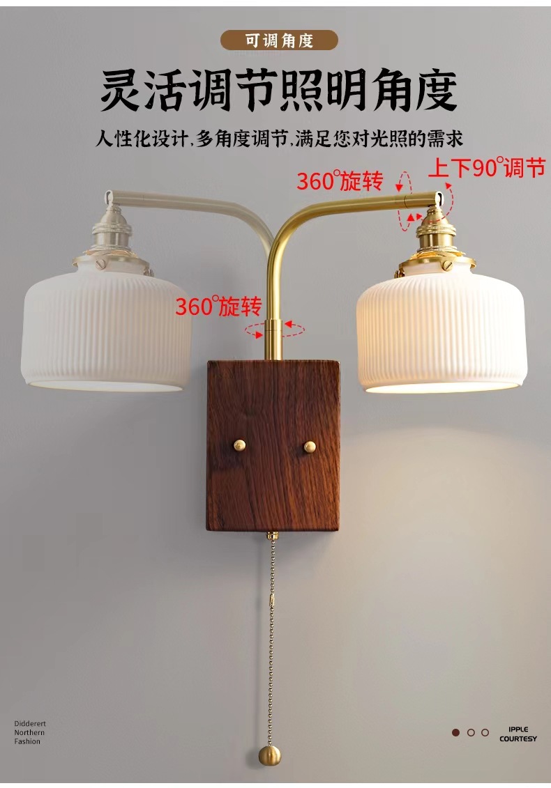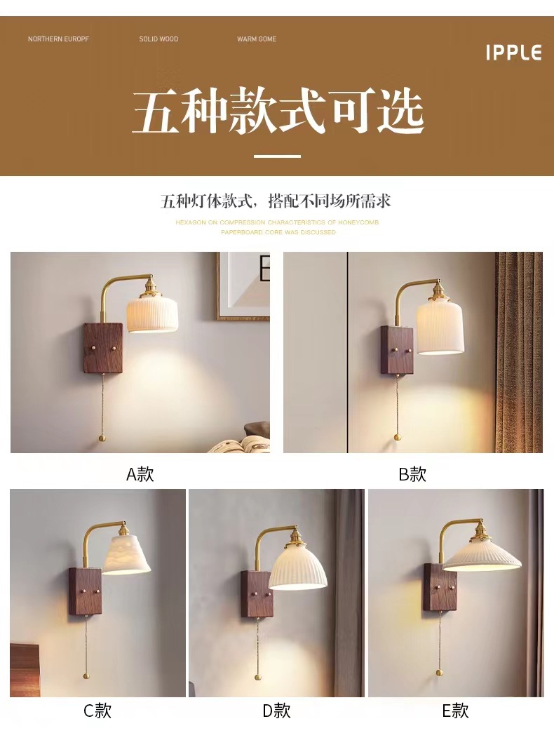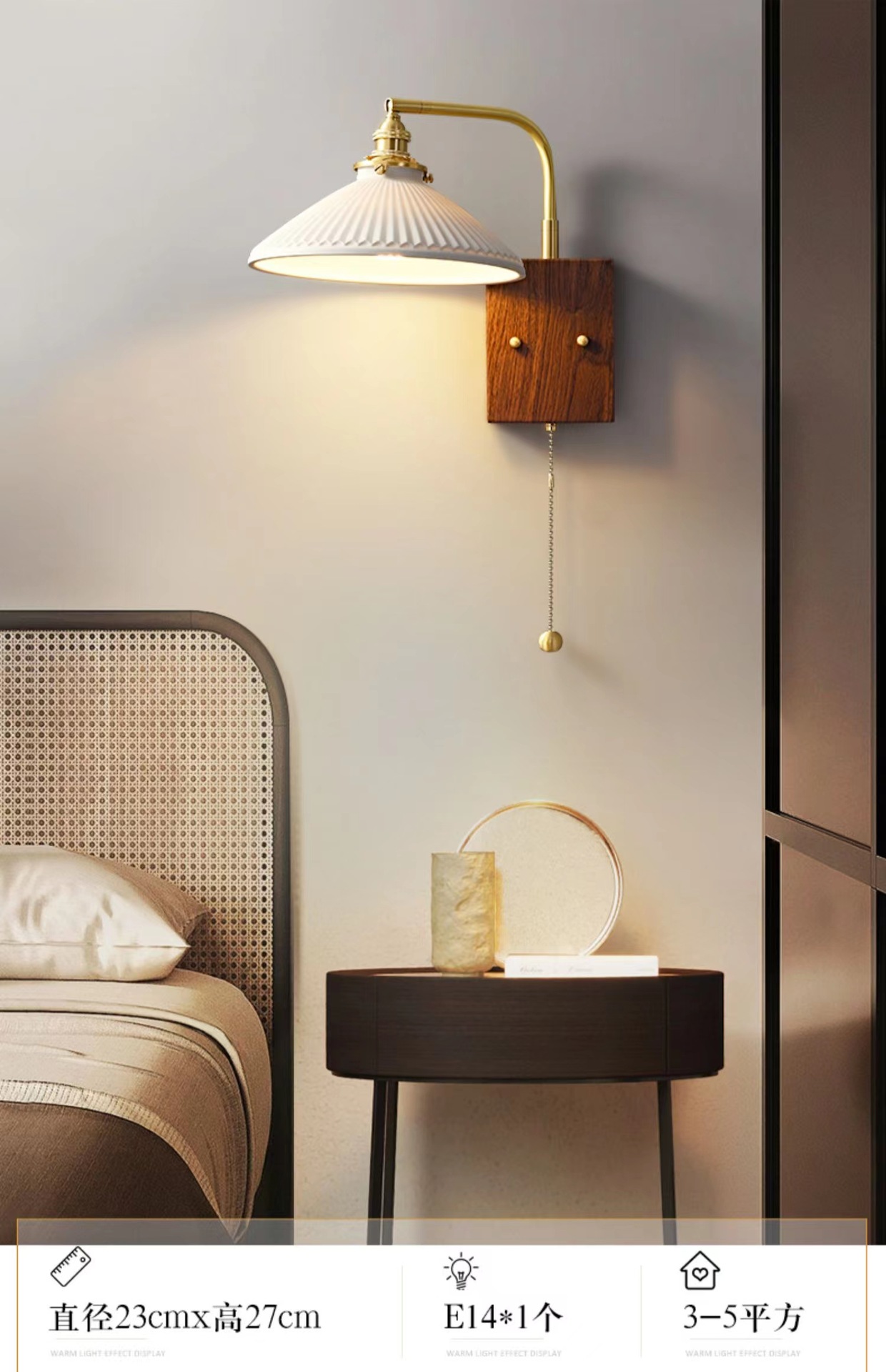 복고풍 이동식 호두 세라믹 벽 램프 새로운 중국 침대 옆 배경 벽 램프 홈스테이 케이블 모든 구리 램프스토어 가기
